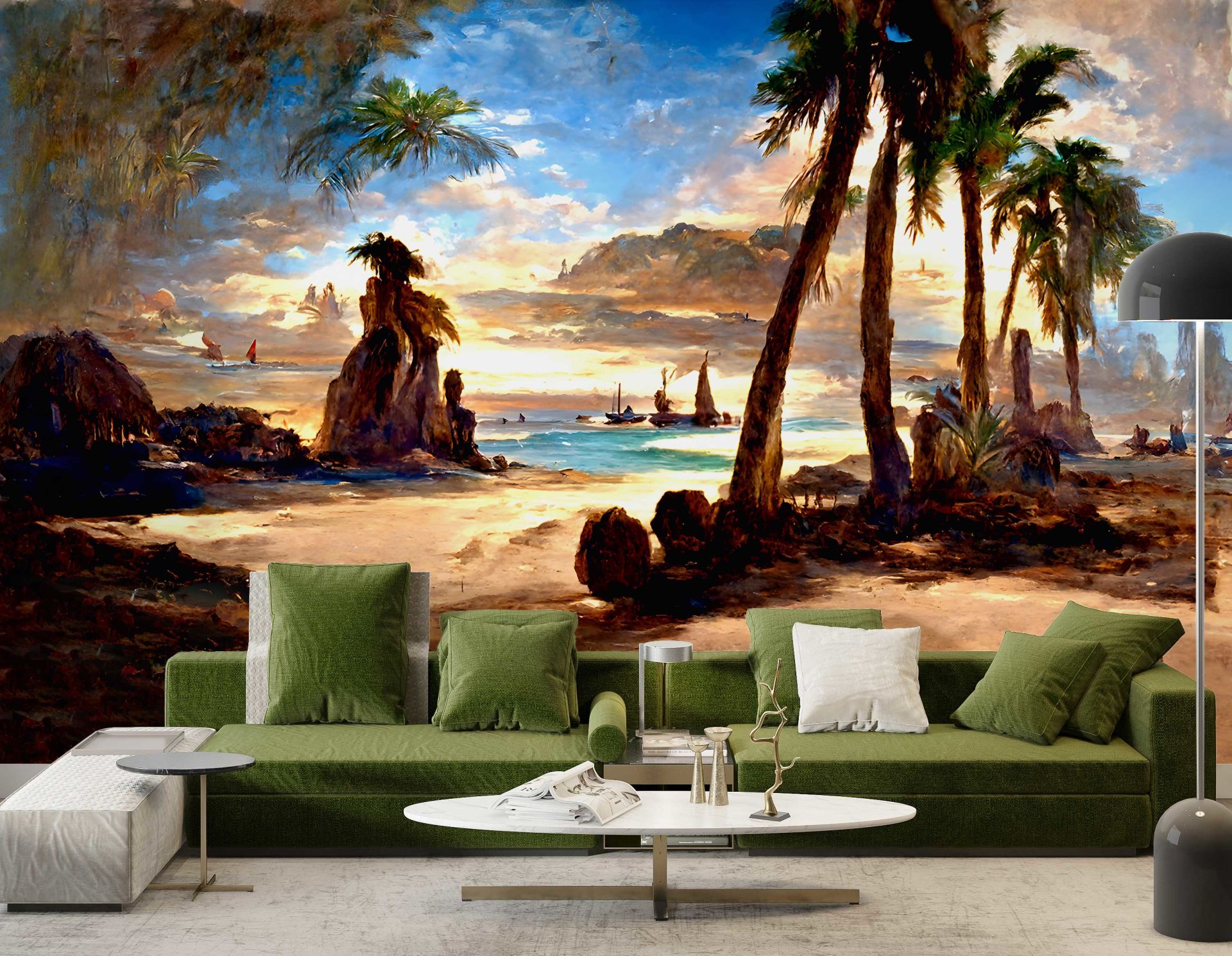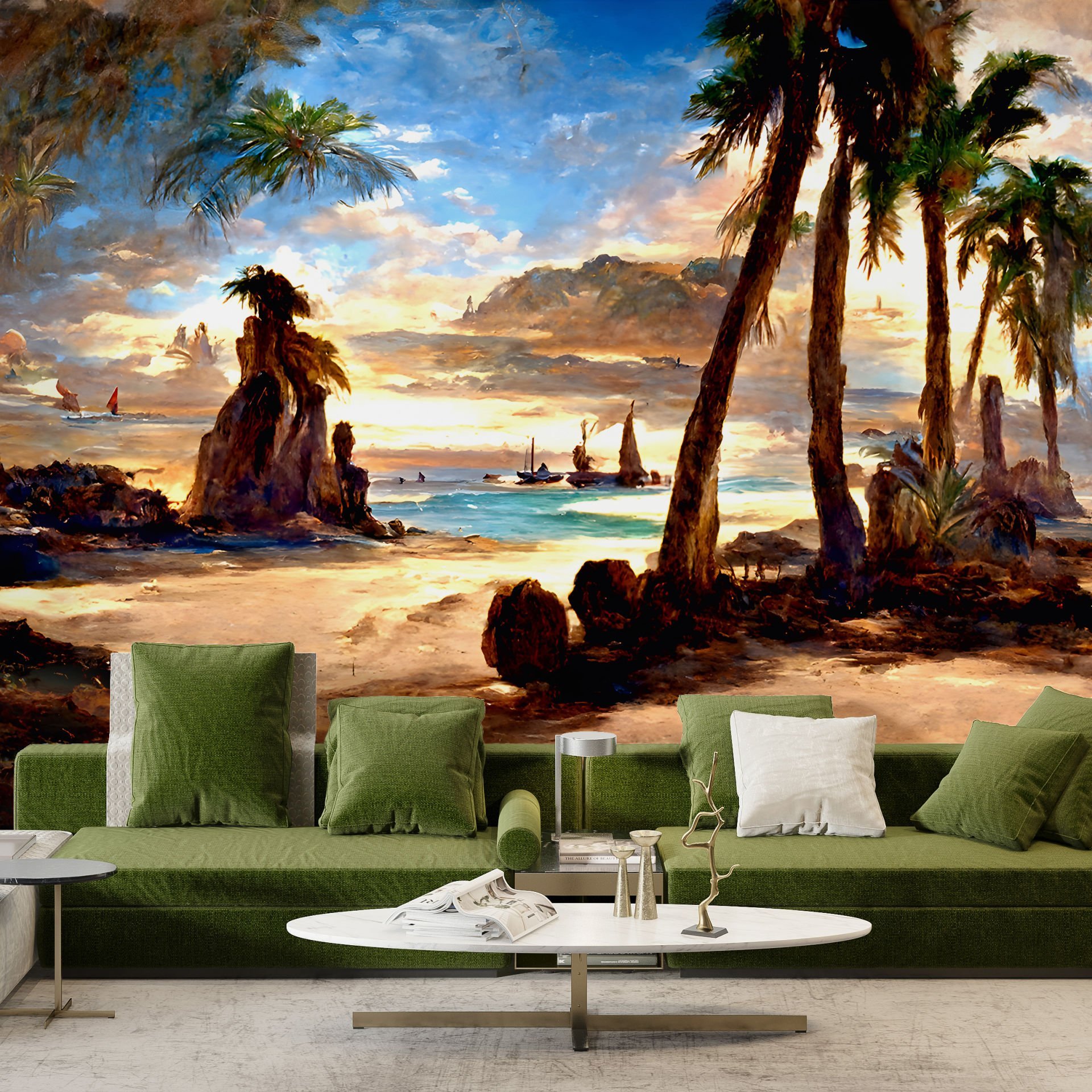Ada Muz Ağaçları Gemiler Duvar Kağıdı