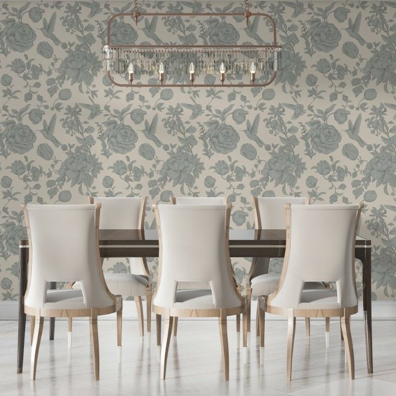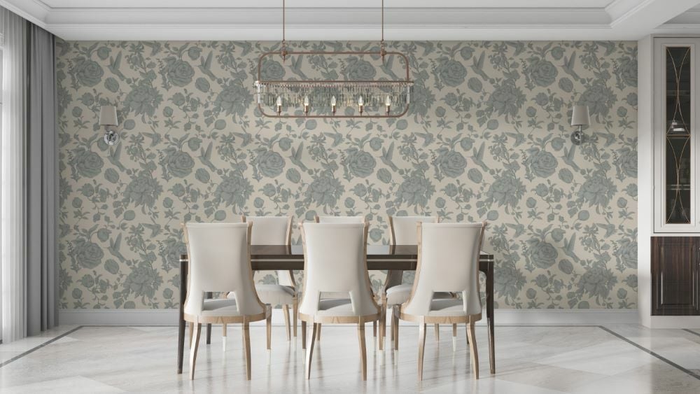 Aile Dizisi Oturma Odası Bej Gri Güller Duvar Kağıdı