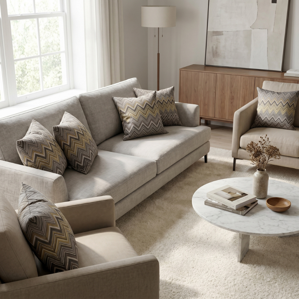 Minimal ve modern dekorasyonlarda güçlü bir tamamlayıcı olan bu yastık modeli, sade koltuklarda dikkat çekici bir vurgu oluşturur. Dengeli renk geçişleri sayesinde hem açık hem koyu tonlarla uyum sağlayan bu yastık, bulunduğu ortama zarif bir derinlik kazandırır.