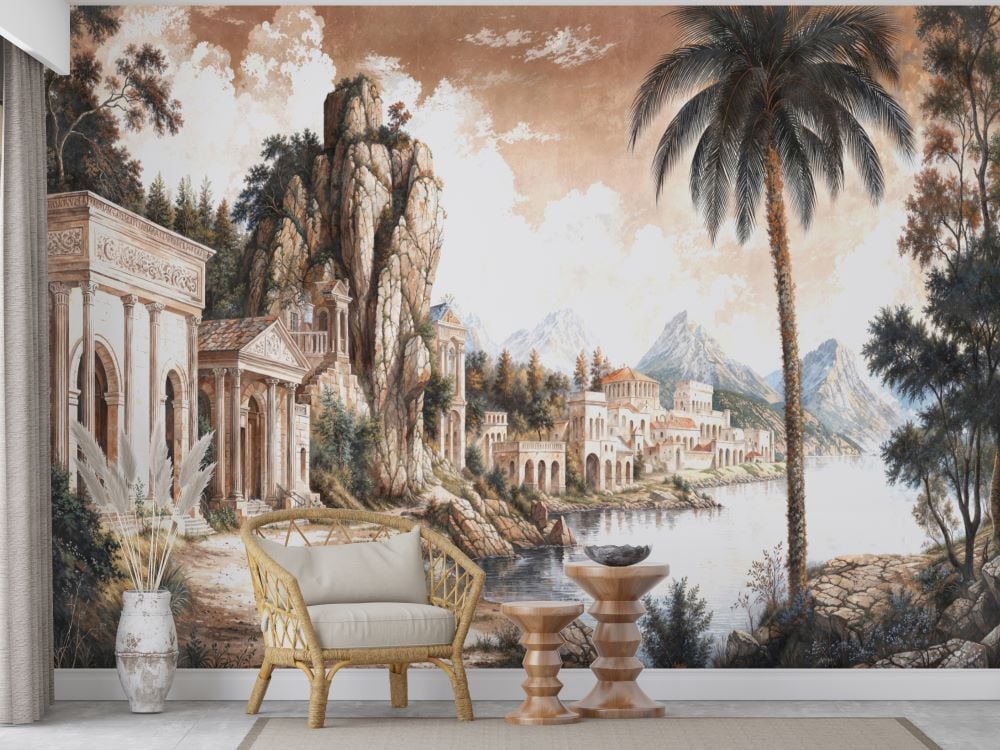Ürün Açıklaması : Kalsik Mimarinin Görkemini Doğal Bir Manzara İle Birleştiren Antik Miras Duvar Kağıdı,İç Mekanlarınıza Tarihi Bir Estetik Ve Zaman Üstü Bir Atmosfer Kazandırır.