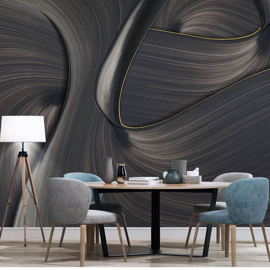 Antrasit Girdap Gold Çizgi Duvar Kağıdı
