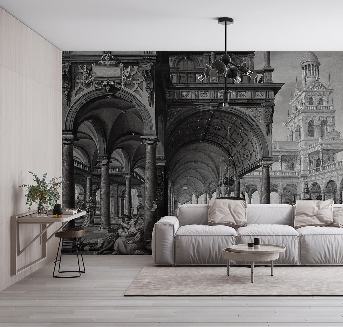 Antrasit Gri Sütunlar Tarihi Kapılar Duvar Kağıdı