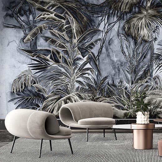Antrasit Koyu Renklerde Tropik Orman Duvar Kağıdı