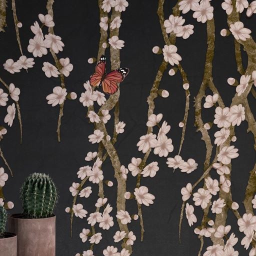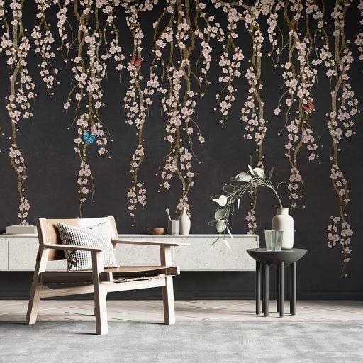 Antrasit Zeminde Sarmaşık Çiçekler Duvar Kağıdı