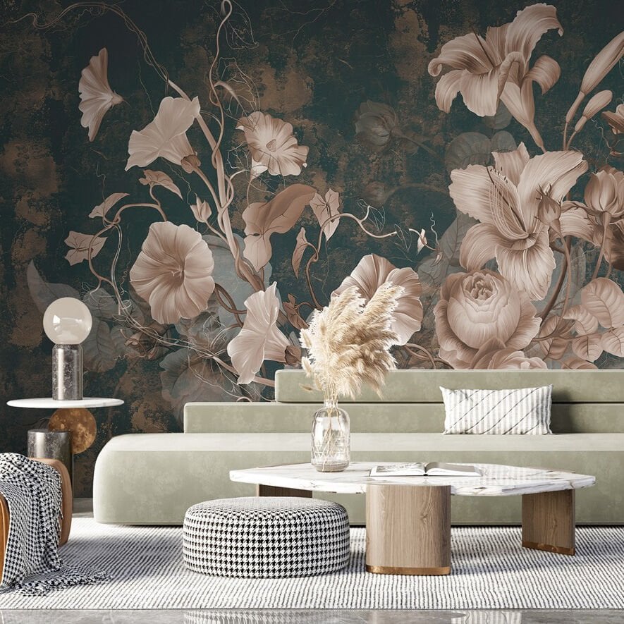 Antrasit Zeminde Sonbahar Çiçekleri Duvar Kağıdı