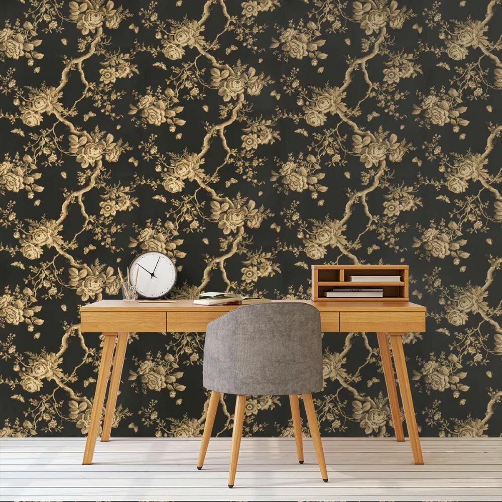 Ashfield Floral Antrasit Kahve Çiçekler Duvar Kağıdı