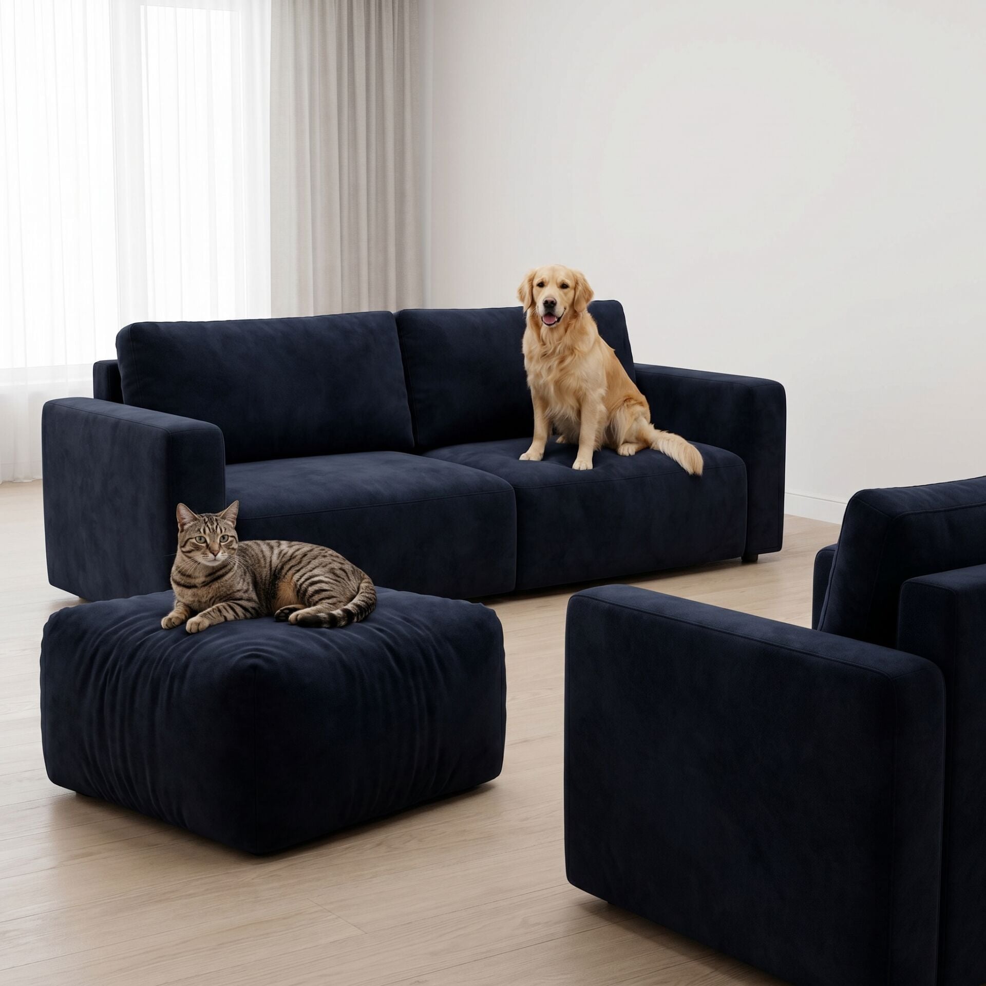 Patili dostlarınızın yaşam alanlarını paylaştığı evlerde koltuk kumaşı seçmek artık daha kolay: Azure serisi, evcil hayvanlarla dolu bir evinizde bile mobilyalarınızın şıklığını ve dayanıklılığını güvence altına alır. Kolay temizlenebilir yapısı, tüylerin kolayca uzaklaştırılabilmesi ve lekelere karşı dirençli yüzeyiyle pati dostu kumaşları tercih etmek, koltuk takımlarında en akılcı seçimdir.