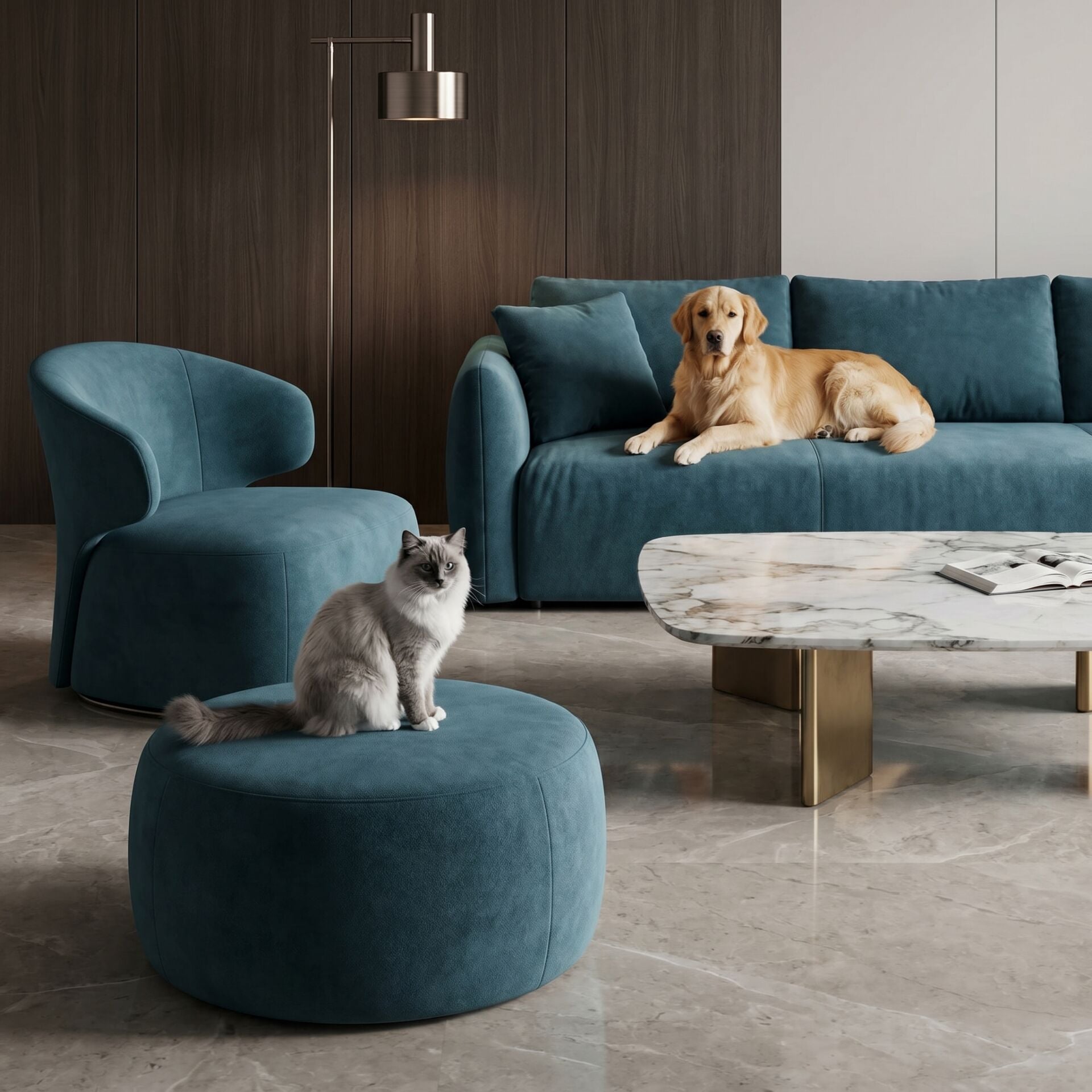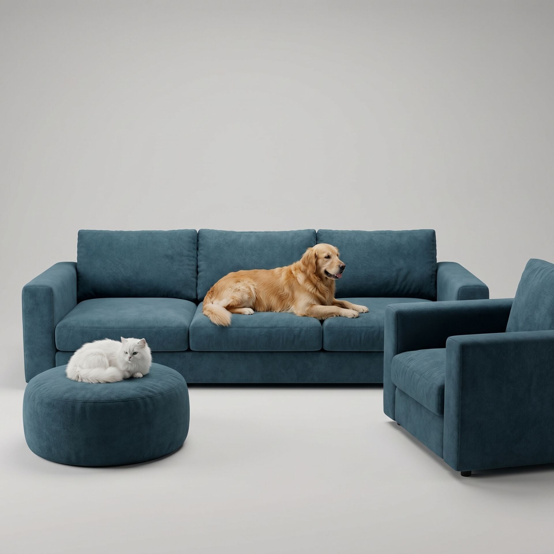 Evcil hayvan sahiplerinin en büyük sorunu, mobilyaların deforme olması ve kumaşlara zarar veren tırnak darbelerine karşı dayanıksız yüzeylerdir. Azure, tam da bu ihtiyaca yönelik özel üretim olarak tasarlanmış bir pati dostu kumaş serisidir. Hem dayanıklı hem de estetik görünümüyle evinizin dekorasyonunu bozmadan koltuk, puf, sandalye ve yastık gibi mobilyalarınızı uzun yıllar korur.