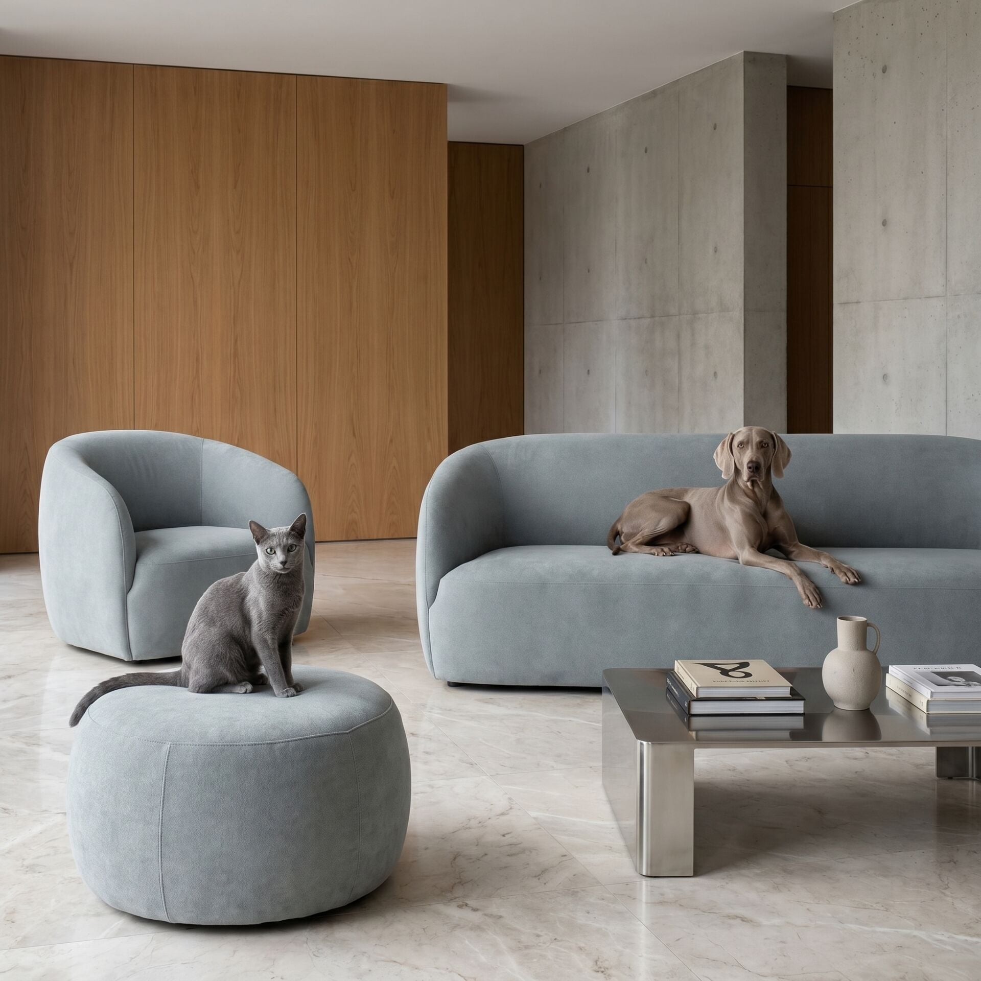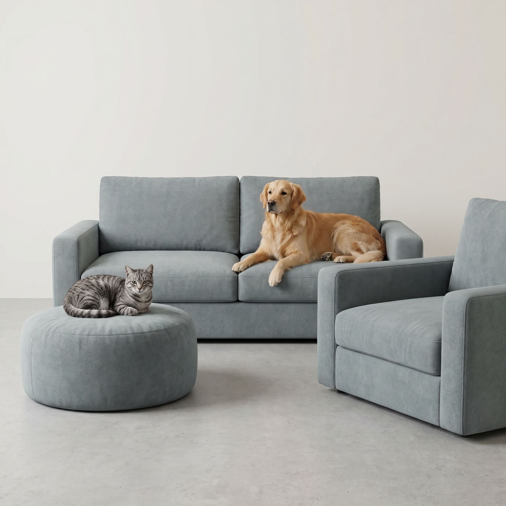 Patili dostlarınızın yaşam alanlarını paylaştığı evlerde koltuk kumaşı seçmek artık daha kolay: Azure serisi, evcil hayvanlarla dolu bir evinizde bile mobilyalarınızın şıklığını ve dayanıklılığını güvence altına alır. Kolay temizlenebilir yapısı, tüylerin kolayca uzaklaştırılabilmesi ve lekelere karşı dirençli yüzeyiyle pati dostu kumaşları tercih etmek, koltuk takımlarında en akılcı seçimdir.