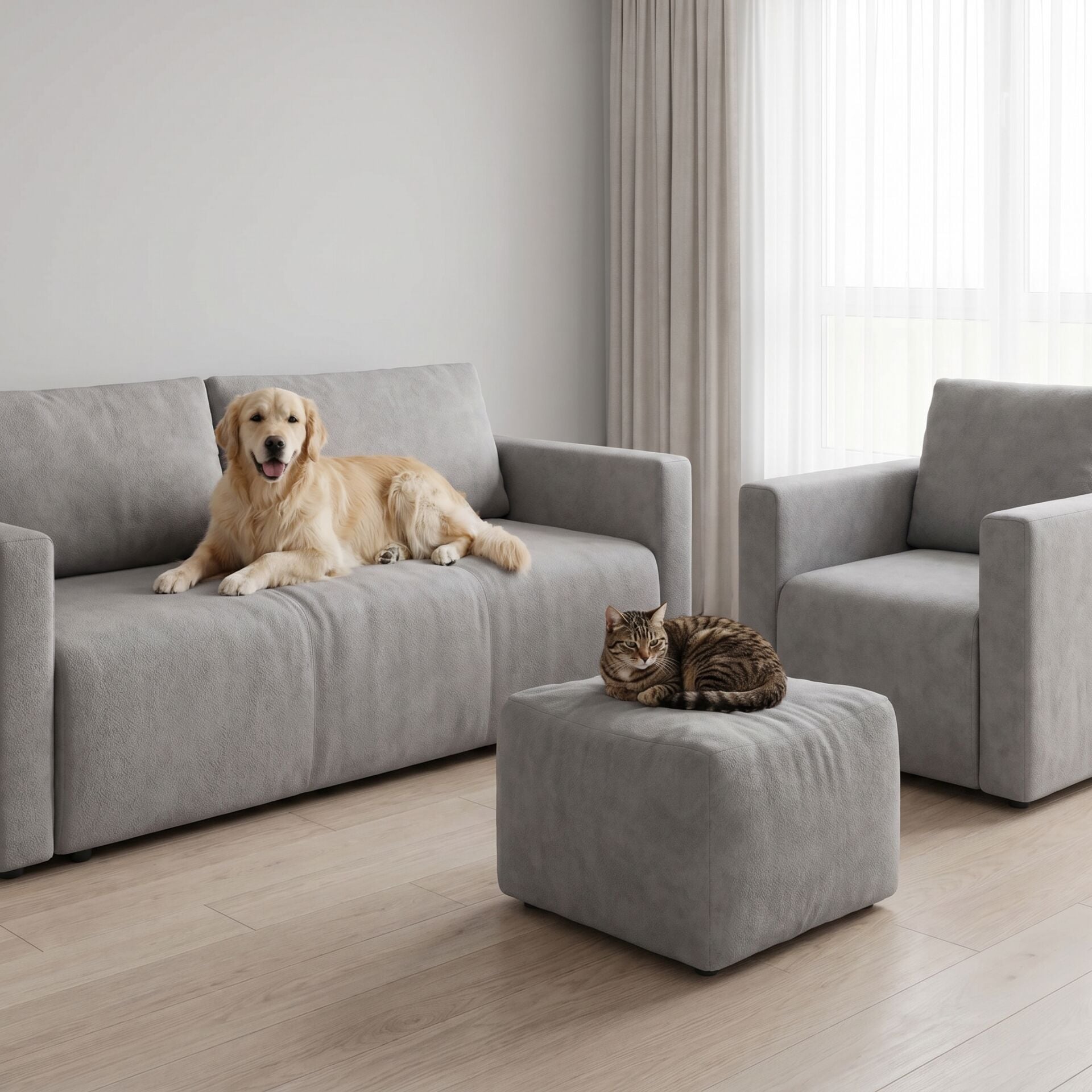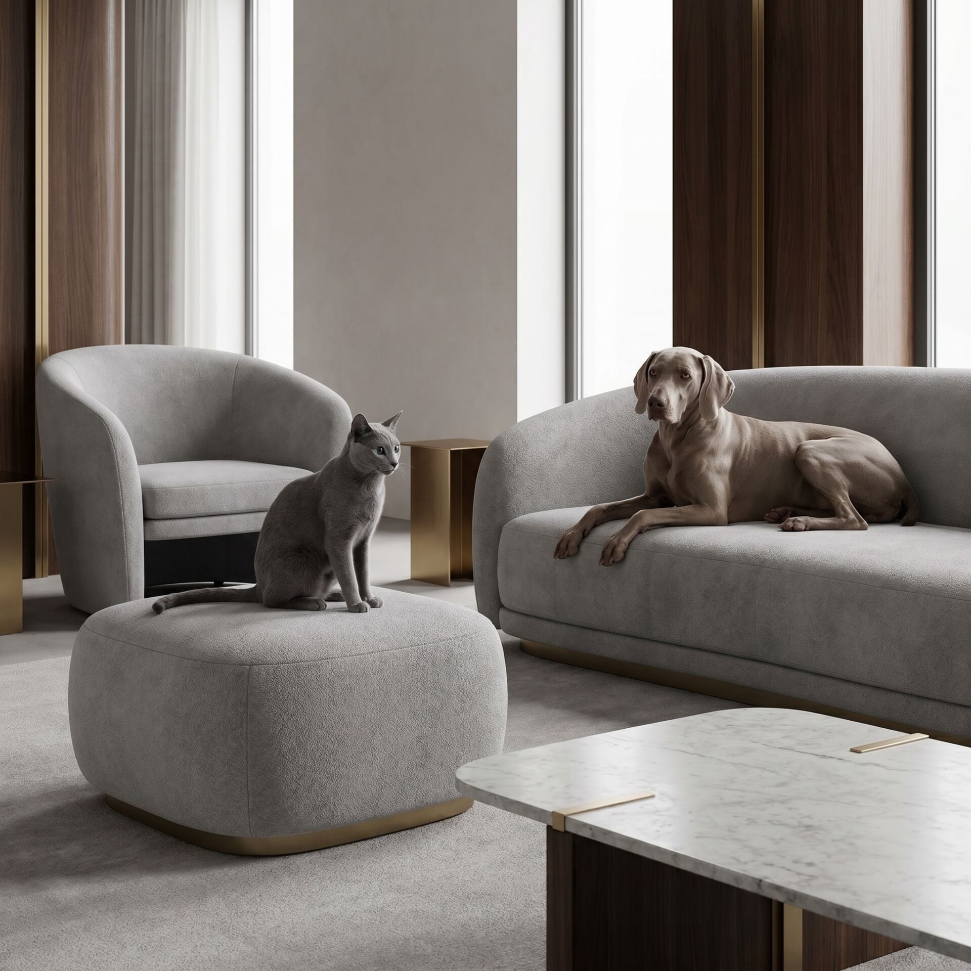 Patili dostlarınızın yaşam alanlarını paylaştığı evlerde koltuk kumaşı seçmek artık daha kolay: Azure serisi, evcil hayvanlarla dolu bir evinizde bile mobilyalarınızın şıklığını ve dayanıklılığını güvence altına alır. Kolay temizlenebilir yapısı, tüylerin kolayca uzaklaştırılabilmesi ve lekelere karşı dirençli yüzeyiyle pati dostu kumaşları tercih etmek, koltuk takımlarında en akılcı seçimdir.