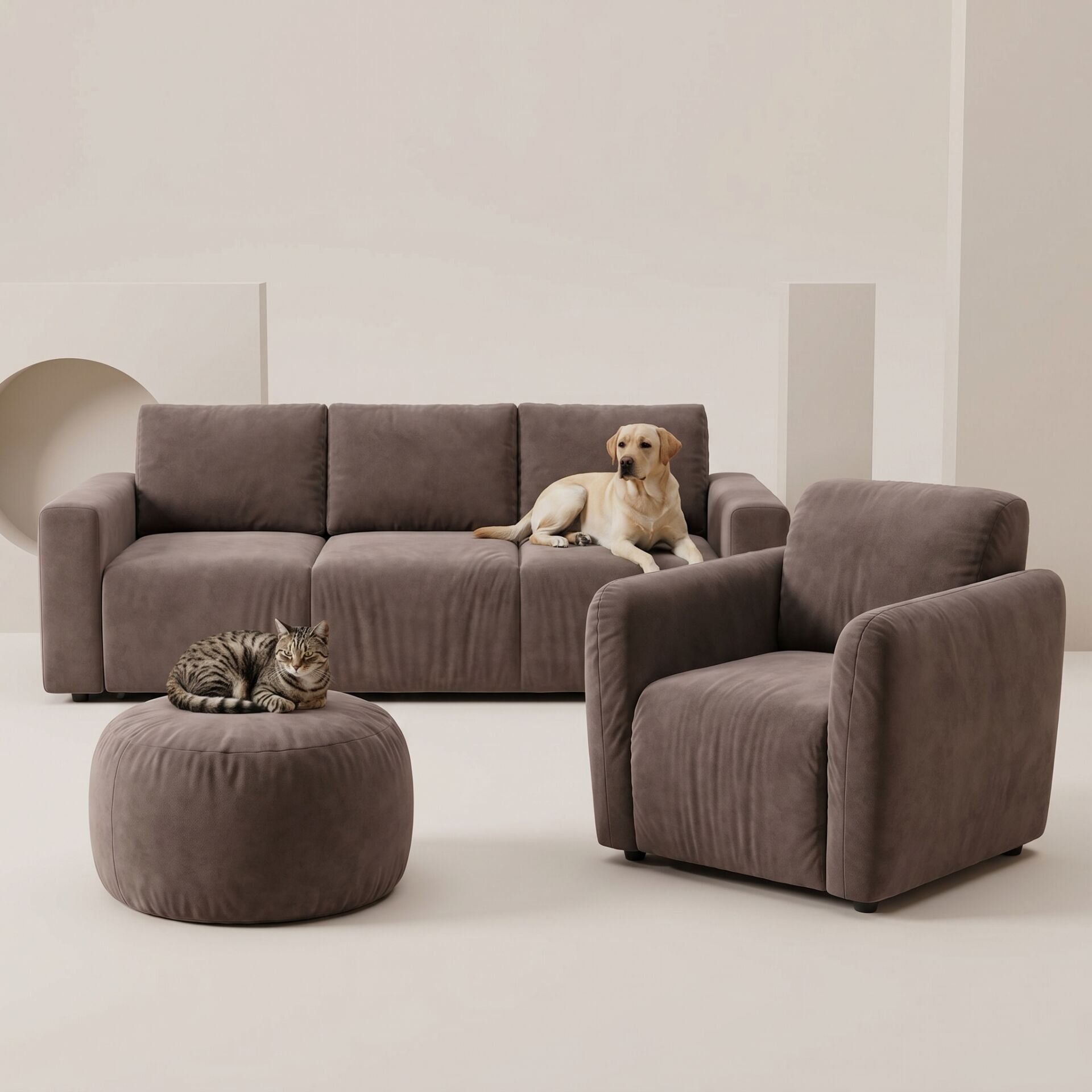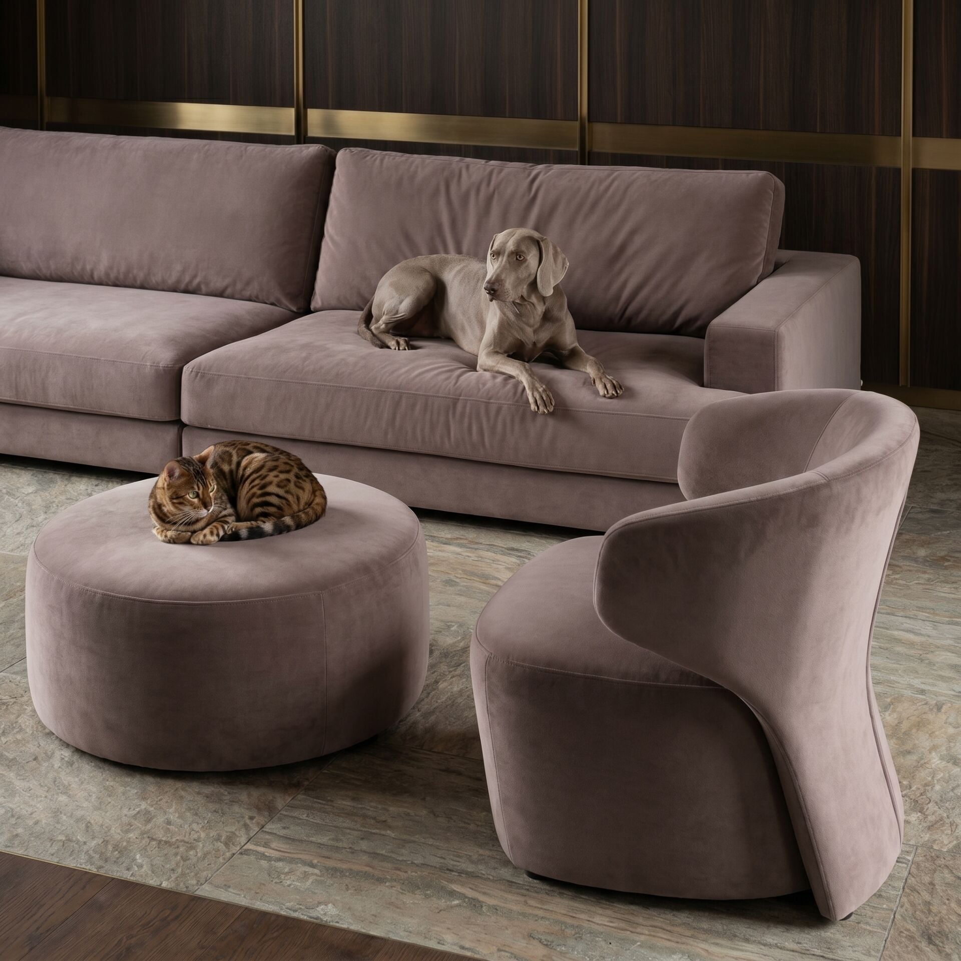 Patili dostlarınızın yaşam alanlarını paylaştığı evlerde koltuk kumaşı seçmek artık daha kolay: Azure serisi, evcil hayvanlarla dolu bir evinizde bile mobilyalarınızın şıklığını ve dayanıklılığını güvence altına alır. Kolay temizlenebilir yapısı, tüylerin kolayca uzaklaştırılabilmesi ve lekelere karşı dirençli yüzeyiyle pati dostu kumaşları tercih etmek, koltuk takımlarında en akılcı seçimdir.
