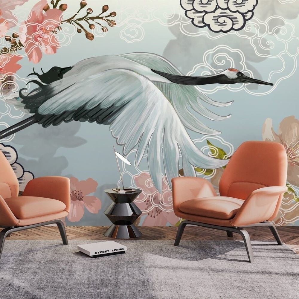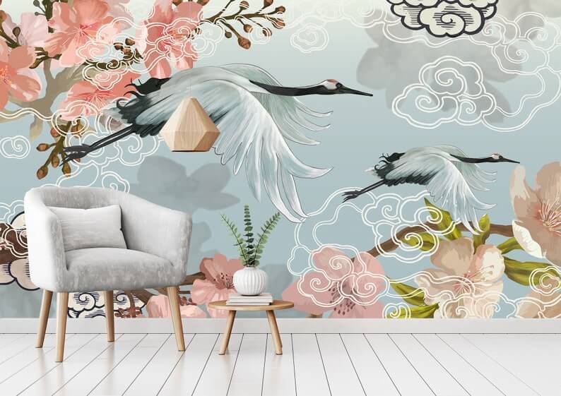 Balıkçı Kuşları Suluboya Çiçekler Duvar Kağıdı