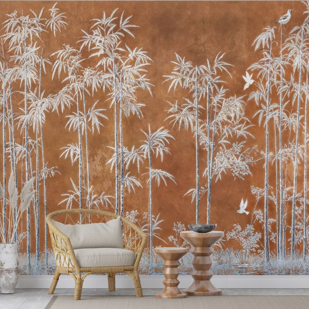 Sıcak Bronz Zemin Rengi İle Beyaz Tonlardaki Bambu Ağaçlarını Bir Araya Getirerek Sofistike Bir Atmosfer Yaratır.Zarif Ve Minimal Tasarımı Sayesinde Her Dekorasyon Stiline Uyum Sağlar.