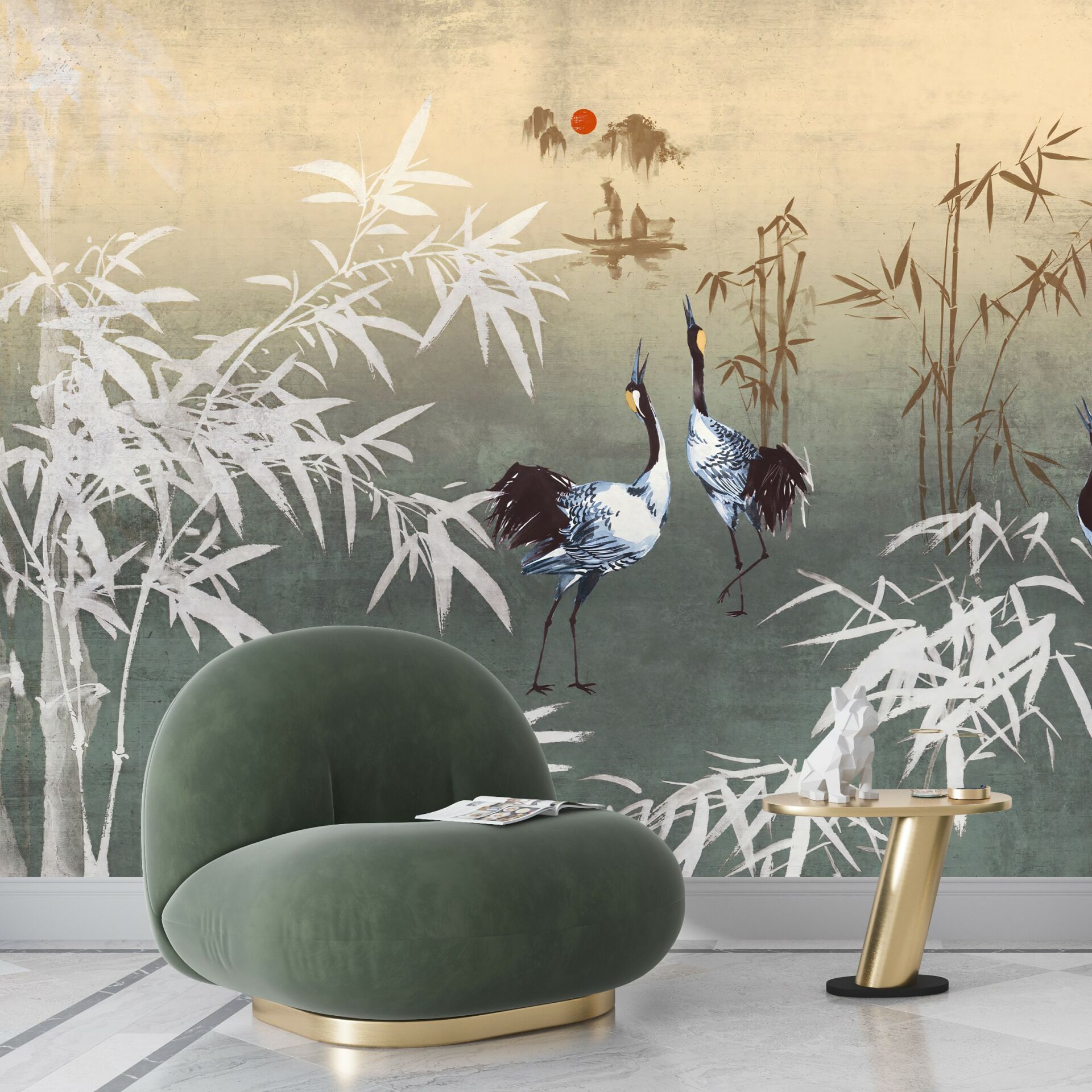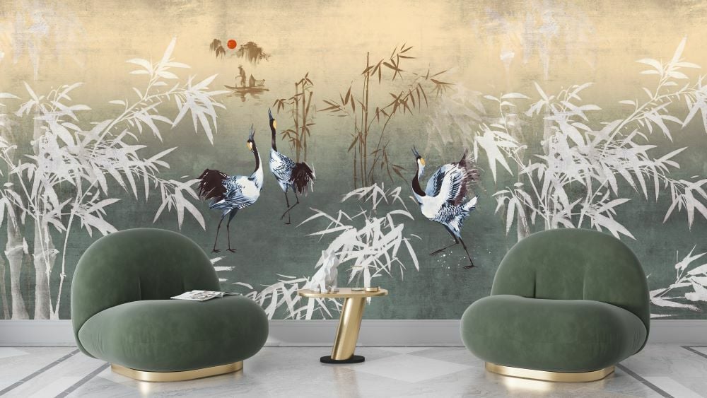 Bambular İçinde Turna Kuşları Duvar Kağıdı