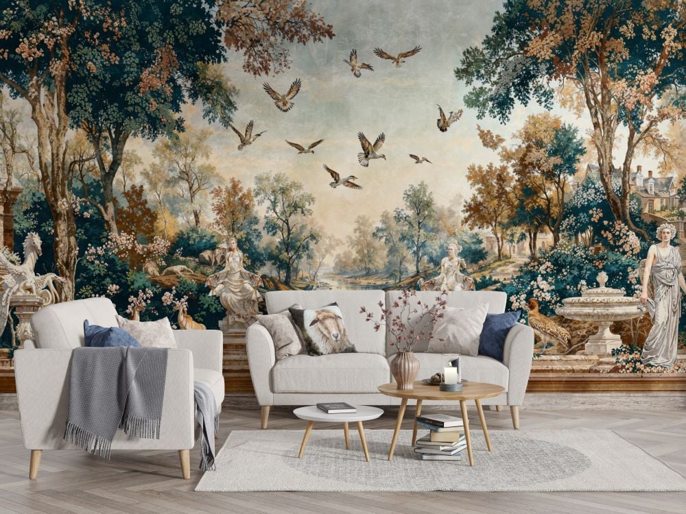 Doğadan ilham alan romantik detaylar, mitolojik figürler ve zarif tonlar bu özel duvar kağıdında bir araya geliyor. Mekanınıza sanatsal bir dokunuş katacak bu yeni tasarım, klasik Avrupa manzara resimlerinin ihtişamını modern dekorasyonla buluşturuyor.