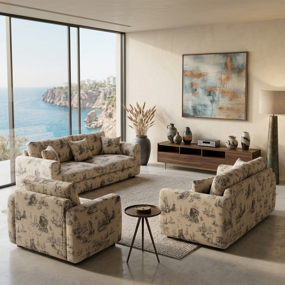 Doğal keten dokusunu zarif baskı detayları ile buluşturan bu özel kumaş, yaşam alanlarına sade, sıcak ve estetik bir görünüm kazandırır. Doğal lif yapısı sayesinde mekânlarda ferah bir atmosfer oluştururken, dekorasyonda dengeli ve zamansız bir etki sunar.