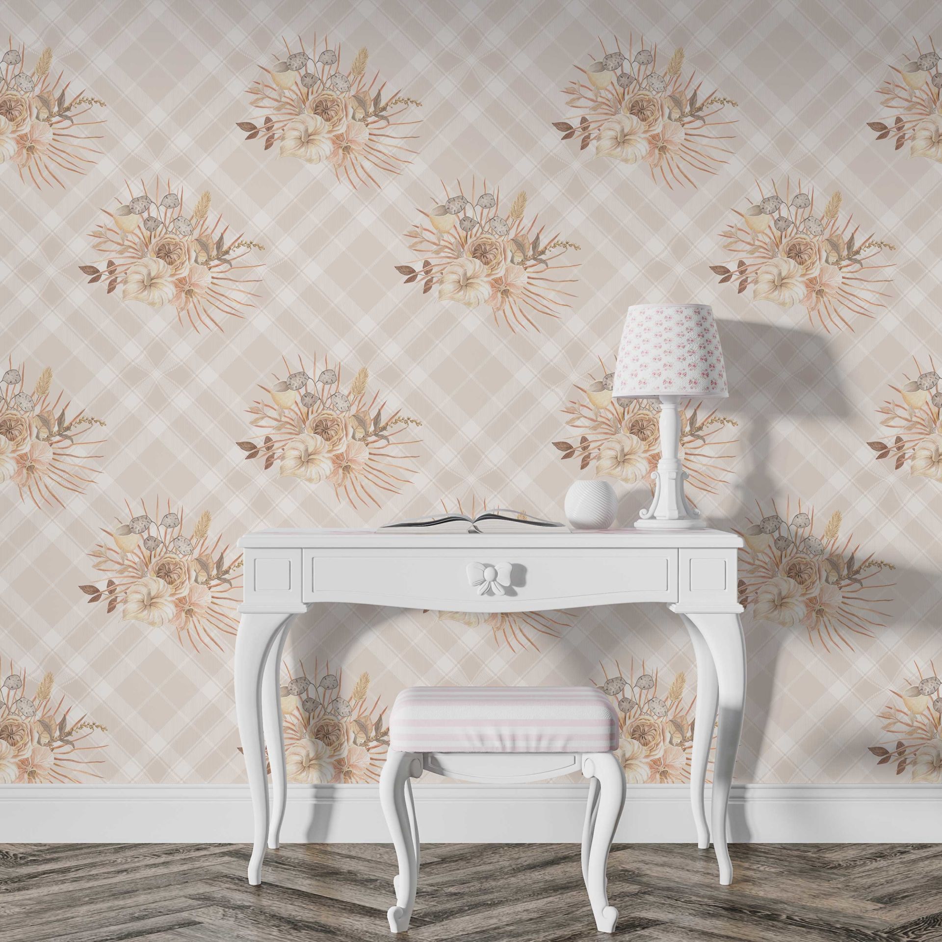 Bej Ekose Üzerine Çiçekler Duvar Kağıdı