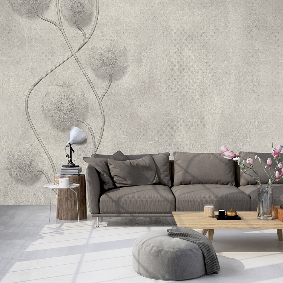 Beton Duvarda Üfleme Çiçekleri Duvar Kağıdı