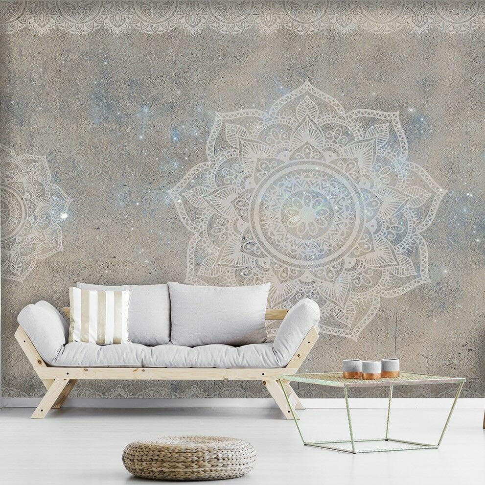 Beton Zeminde Yıldız Efektli Mandala Duvar Kağıdı