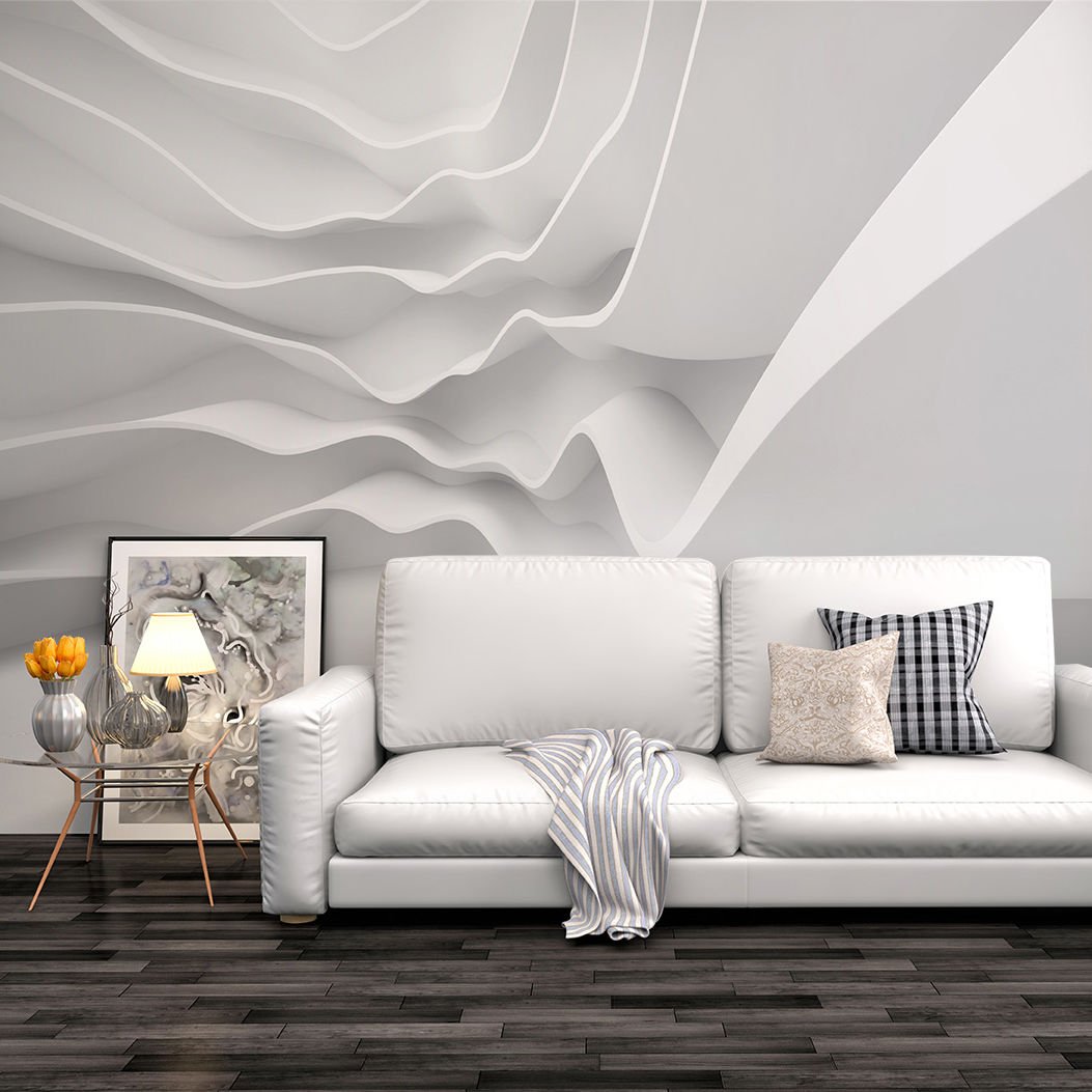 Beyaz Dalga Rölyef Desen Tasarım Duvar Kağıdı