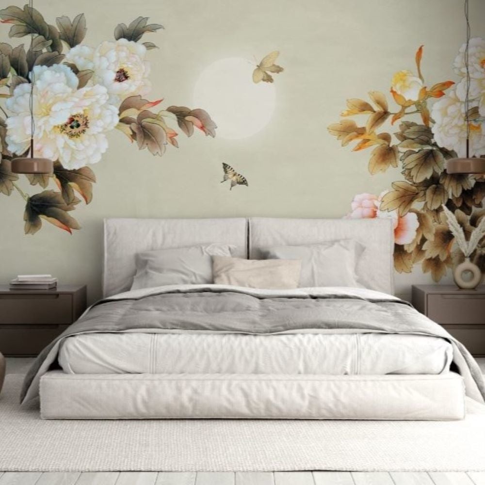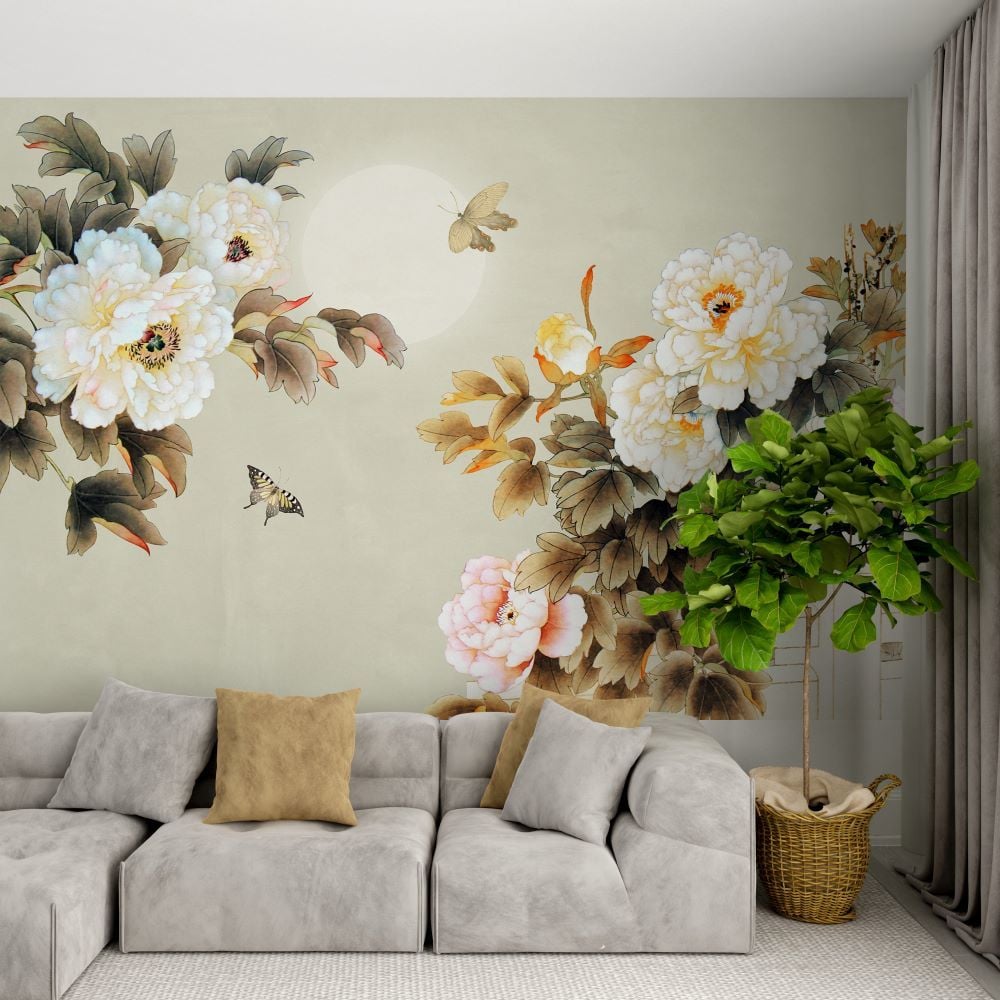 Beyaz Güller Kahve Yapraklar Duvar Kağıdı