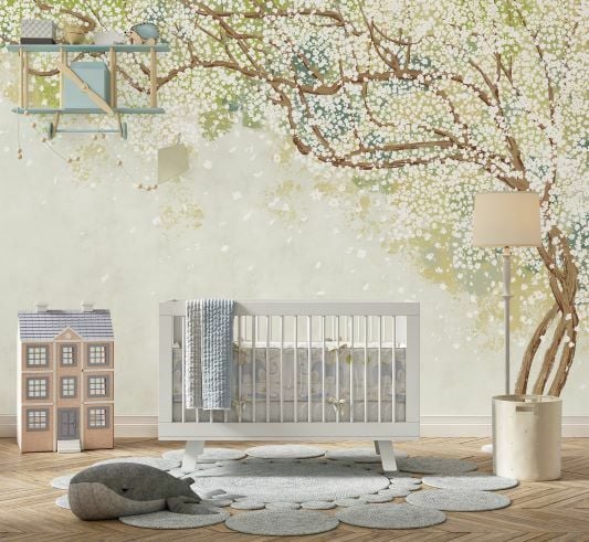 Beyaz Minik Çiçekli Büyük Ağaç Duvar Kağıdı