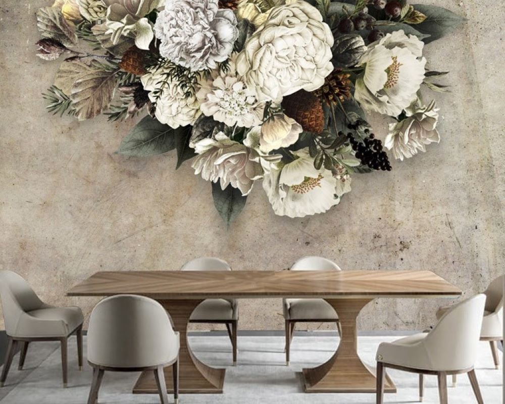 Beyaz Şakayık Desenli Duvar Kağıdı