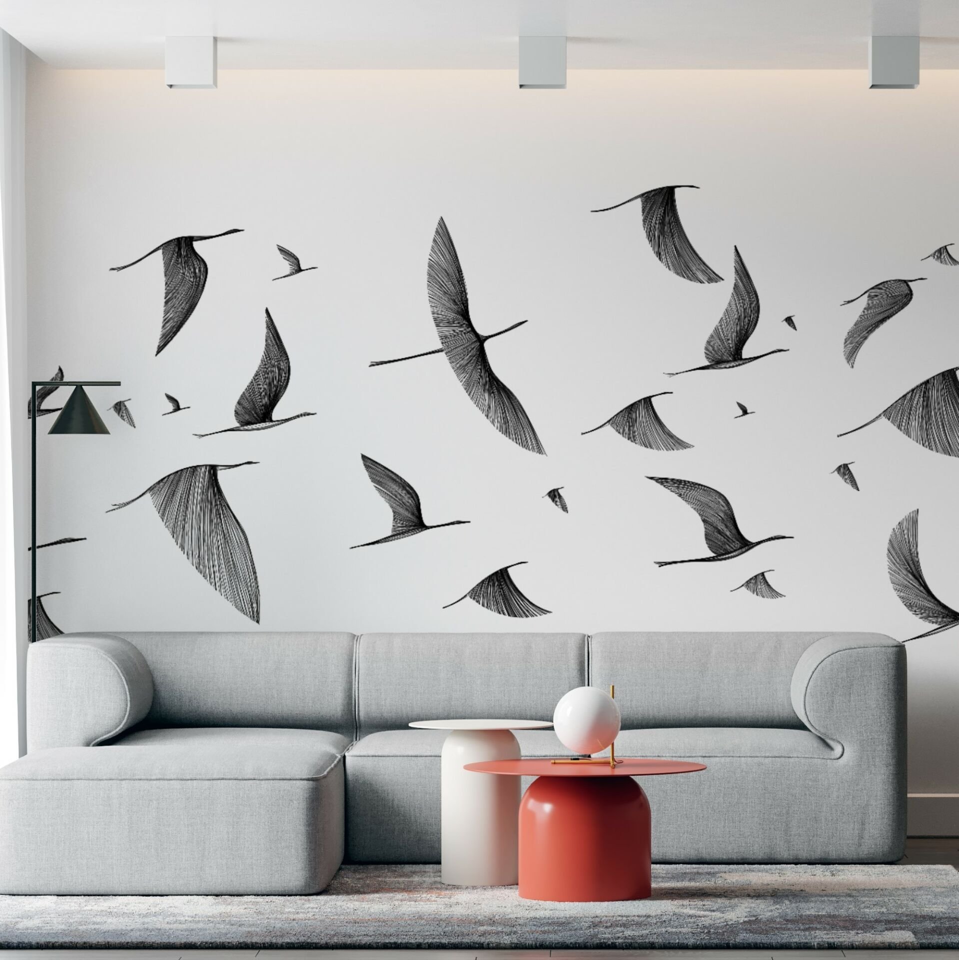 Beyaz Zeminde Kırlangıç Kuşlar Duvar Kağıdı