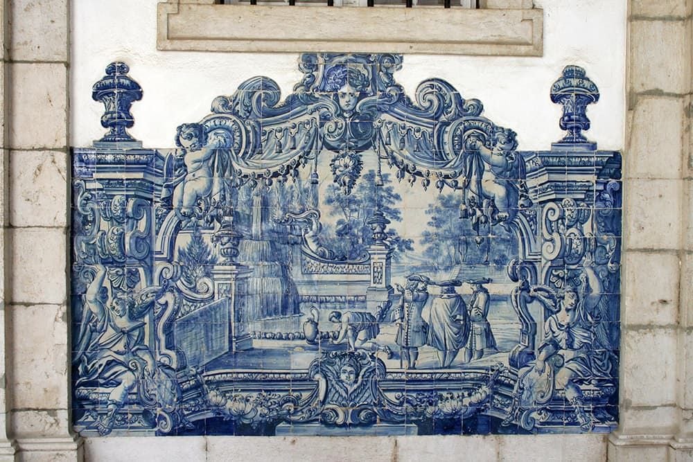 Blue Blanc Çini Mavi Tarihi Çeşme Duvar Kağıdı