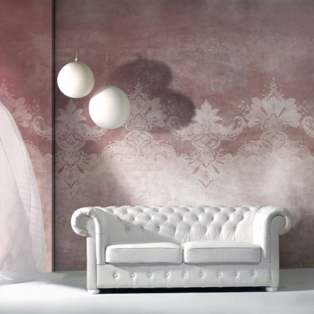 Bordo Eskitme Oryantal Damask Desen Duvar Kağıdı