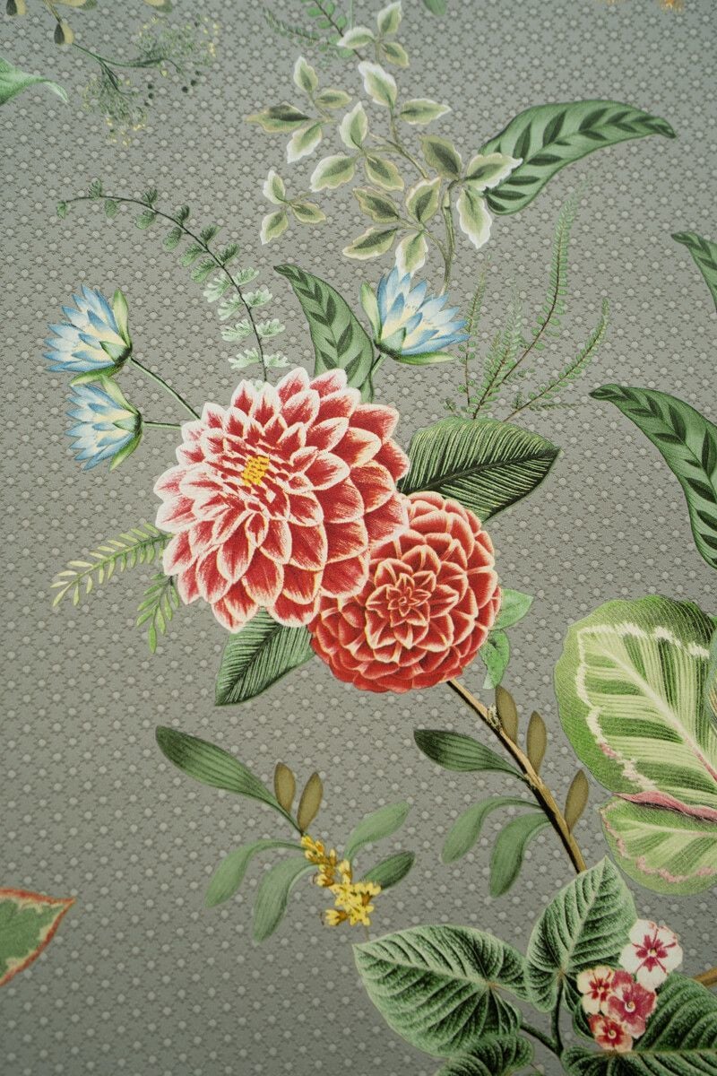 Özet Bilgi: Pip Studio, mavi rengin ferahlık veren görünümünden, palmiye ağaçları, cennet kuşları ve egzotik çiçeklerden ilham alarak, Palm Scene duvar kağıdını tasarlamıştır.