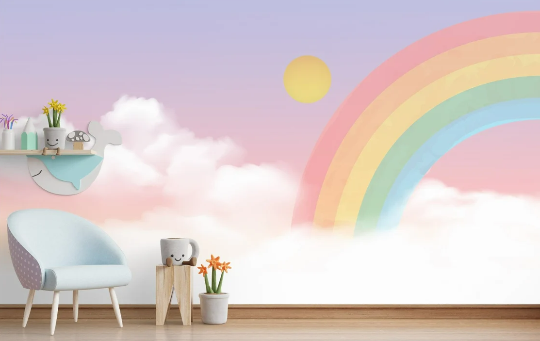Bulutlar İçinde Gökkuşağı Güneş Duvar Kağıdı