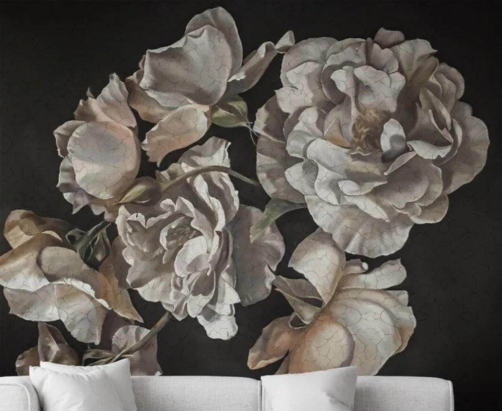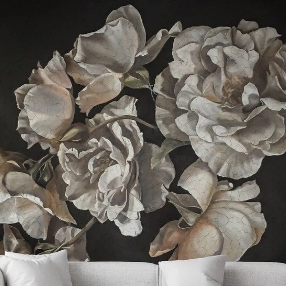 Büyük Güller Rölyef Çatlamış Desen Duvar Kağıdı