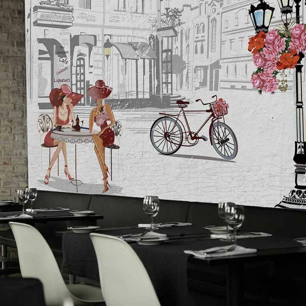 Cafe De Oturan Kırmızılı Kadınlar Duvar Kağıdı