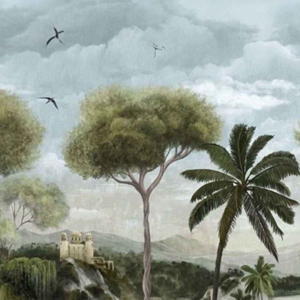 Canlı Yeşil Tonları Tropik Orman ve Kale Duvar Kağıdı