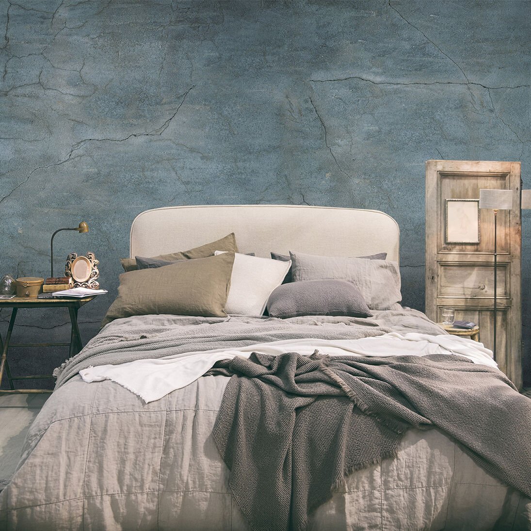 Çatlamış Duvar Desen Lacivert Mavi Duvar Kağıdı
