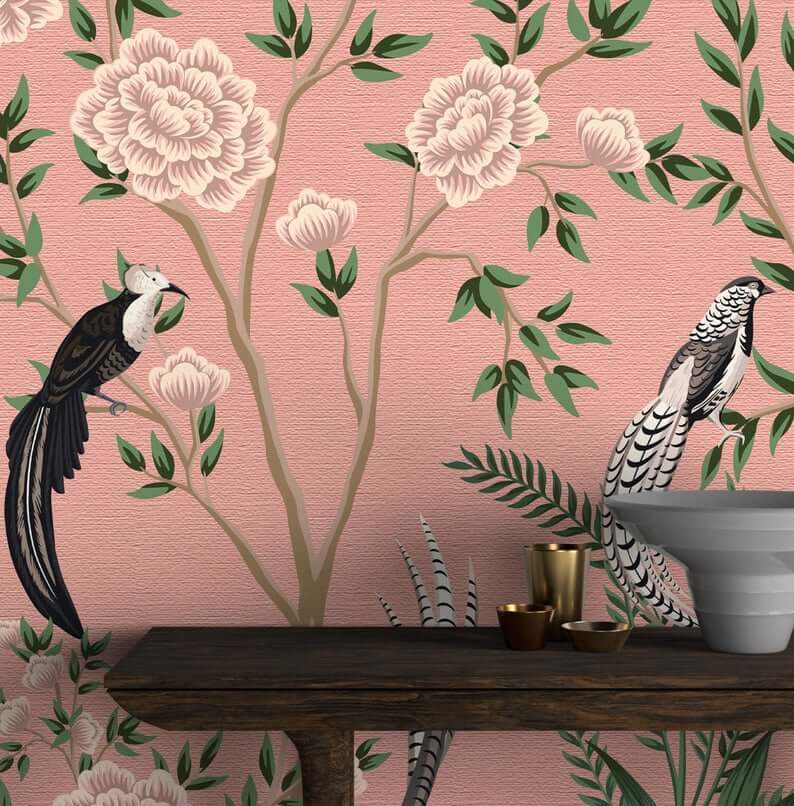 Uva Pembe Çiçekler Papağan Duvar Kağıdı