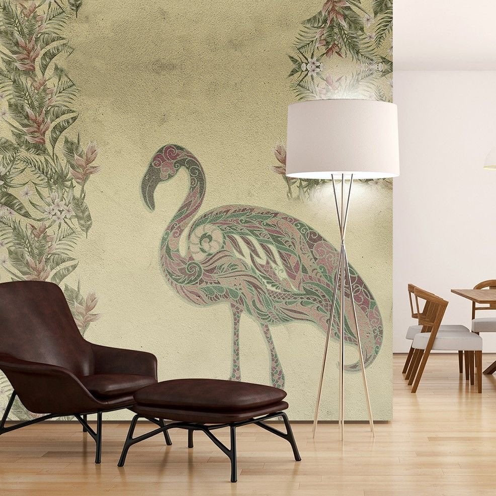 Çiçeklerle Tasarlanmış Flamingo Duvar Kağıdı