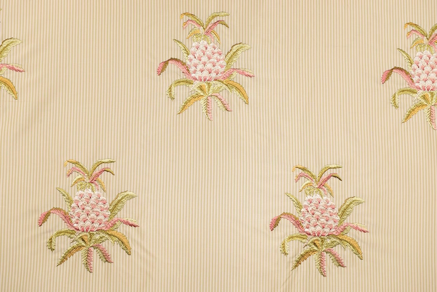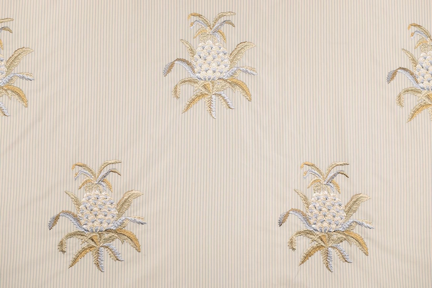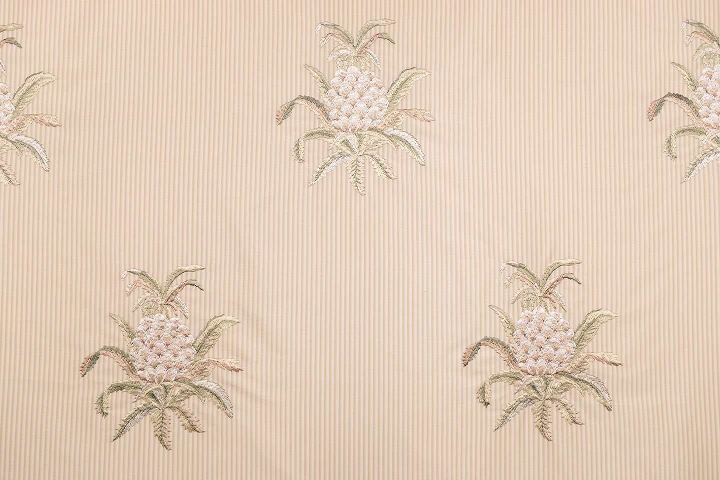 Çizgili Saten Zemine Nakışlı Döşemelik Kumaş