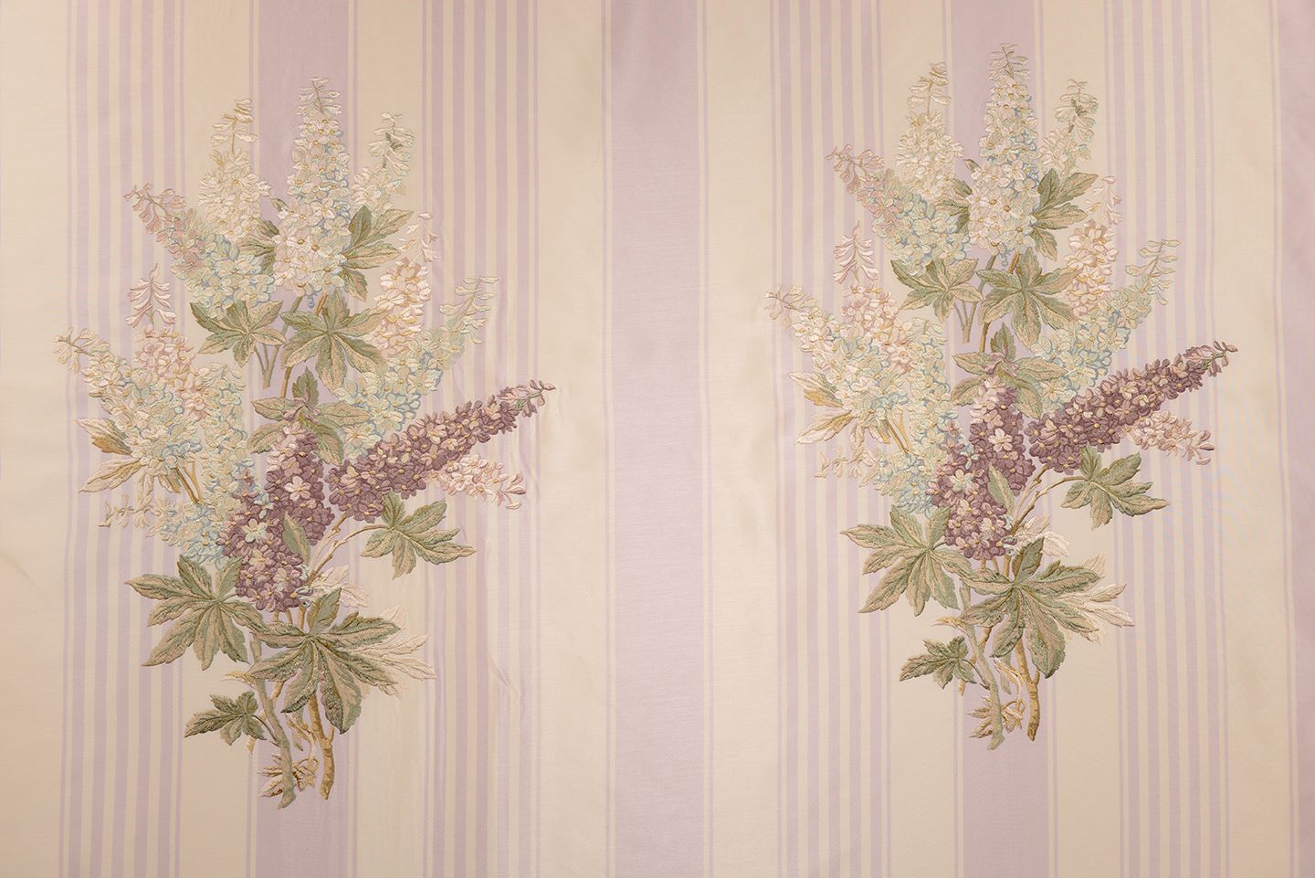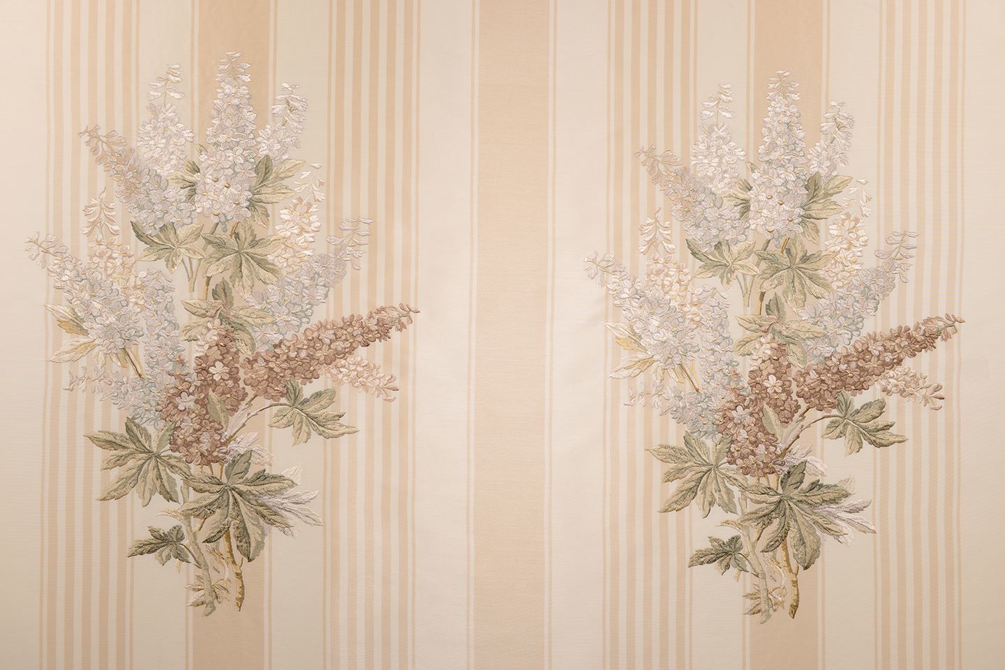 Çizgili Saten Zemine Nakışlı Döşemelik Kumaş