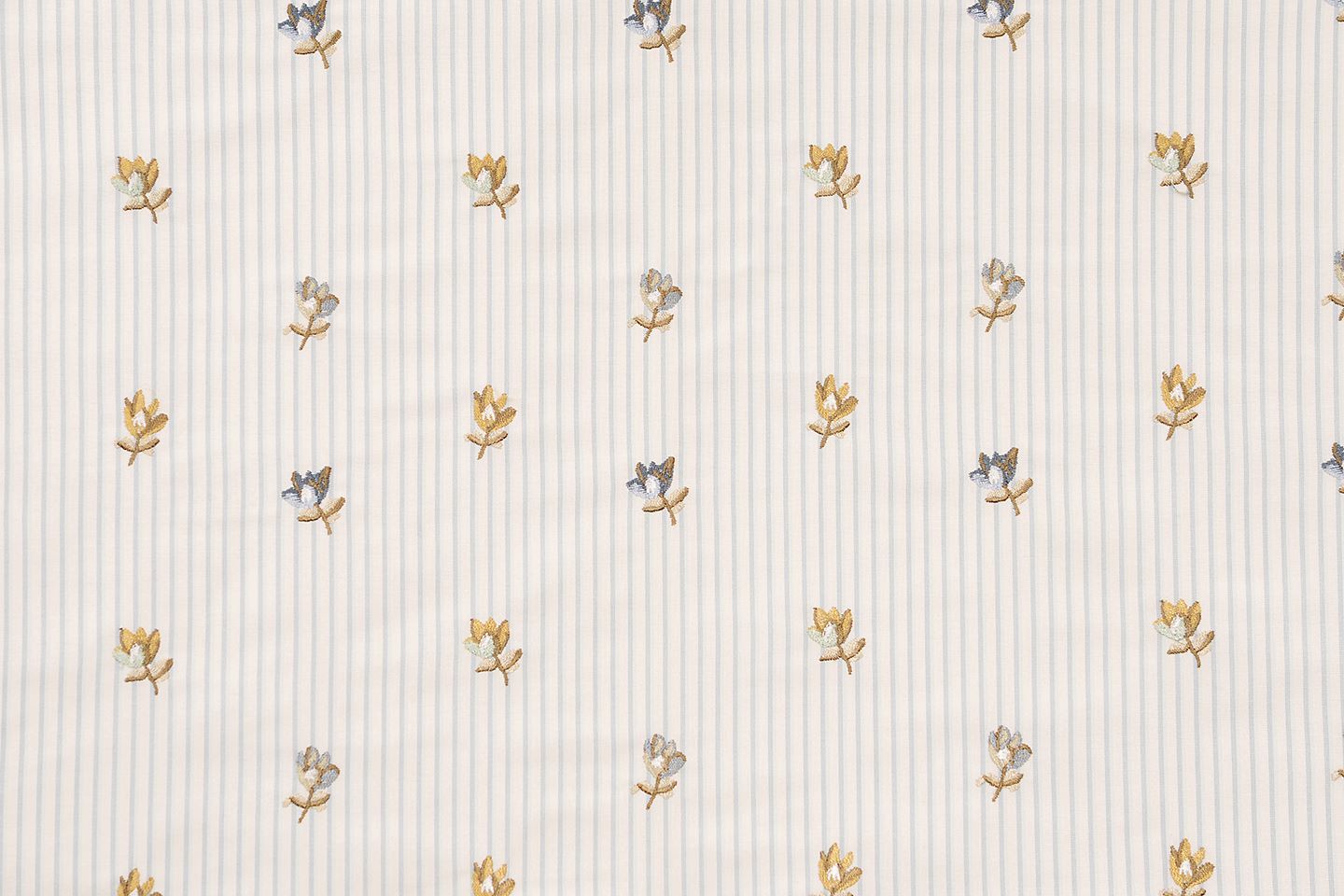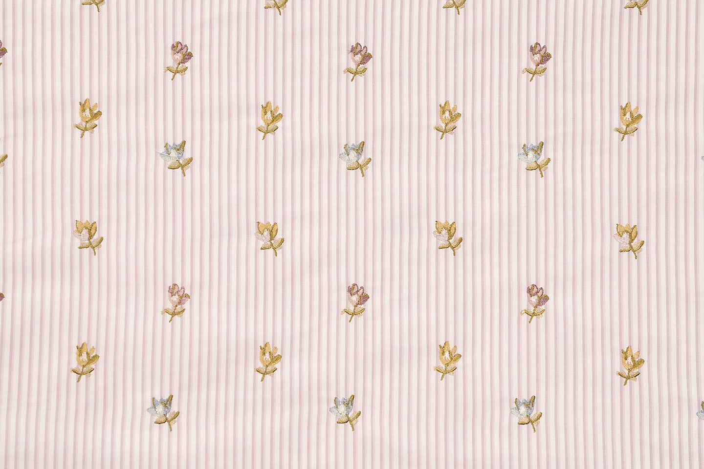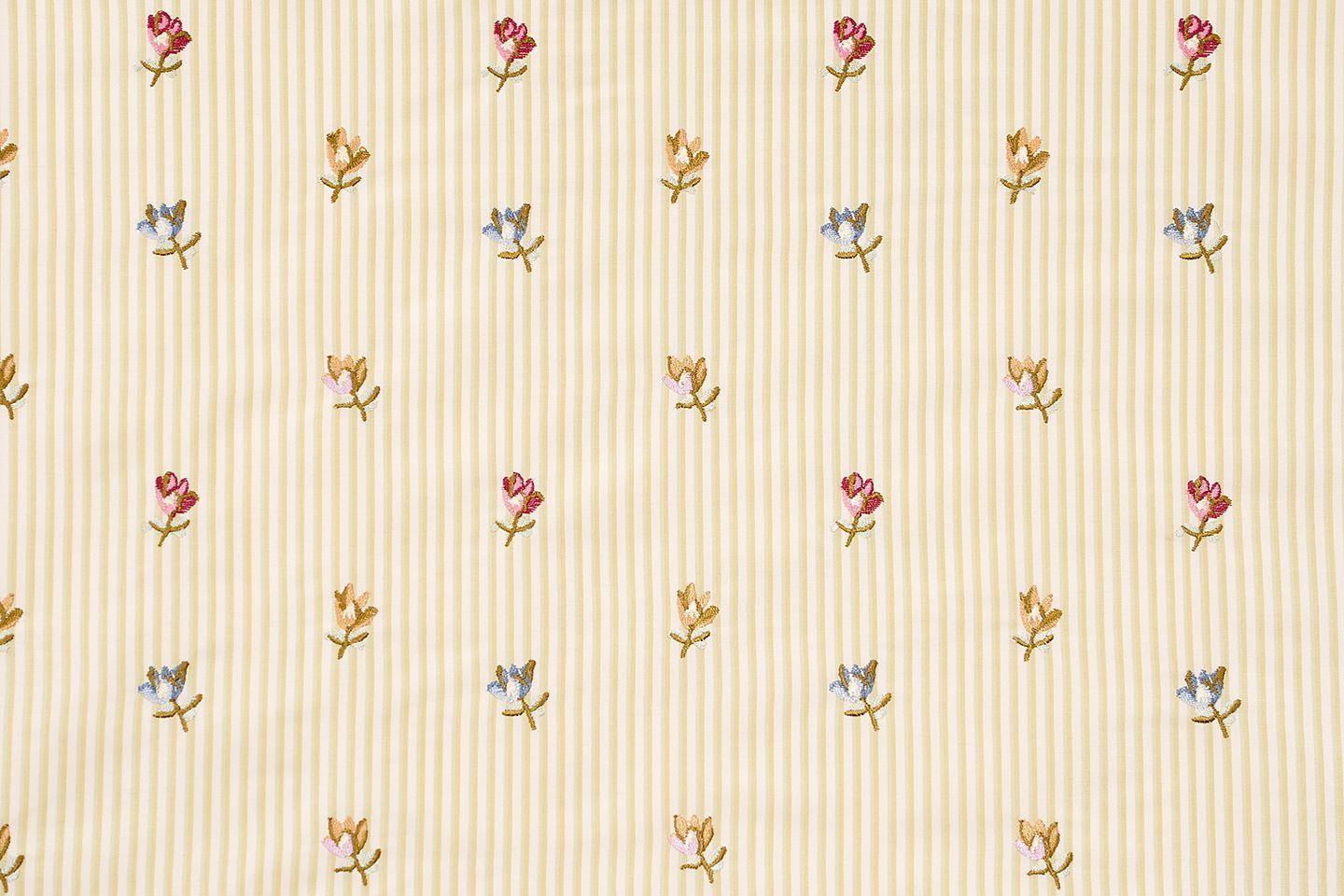 Çizgili Saten Zemine Nakışlı Döşemelik Kumaş