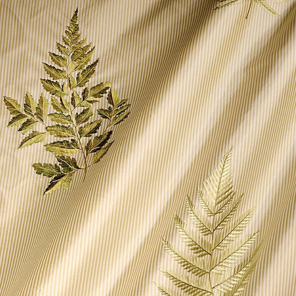 Çizgili saten zemin üzerine işlenen zarif nakış detayları ile öne çıkan bu özel kumaş, yaşam alanlarına modern ve sofistike bir görünüm kazandırır. Işığı yumuşak şekilde yansıtan saten yüzeyi ve ritmik çizgi formu sayesinde mekânlarda dengeli ve dikkat çekici bir atmosfer oluşturur.