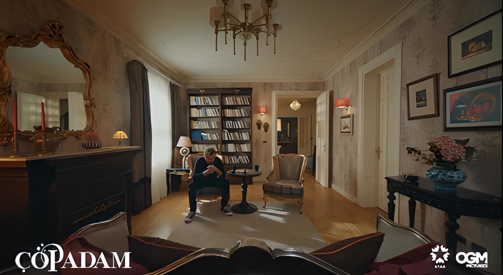 Çöp Adam Dizi Tamer (Engin Altan Düzyatan) Çalışma Odası Bej Zeminde Ağaçlar Duvar Kağıdı