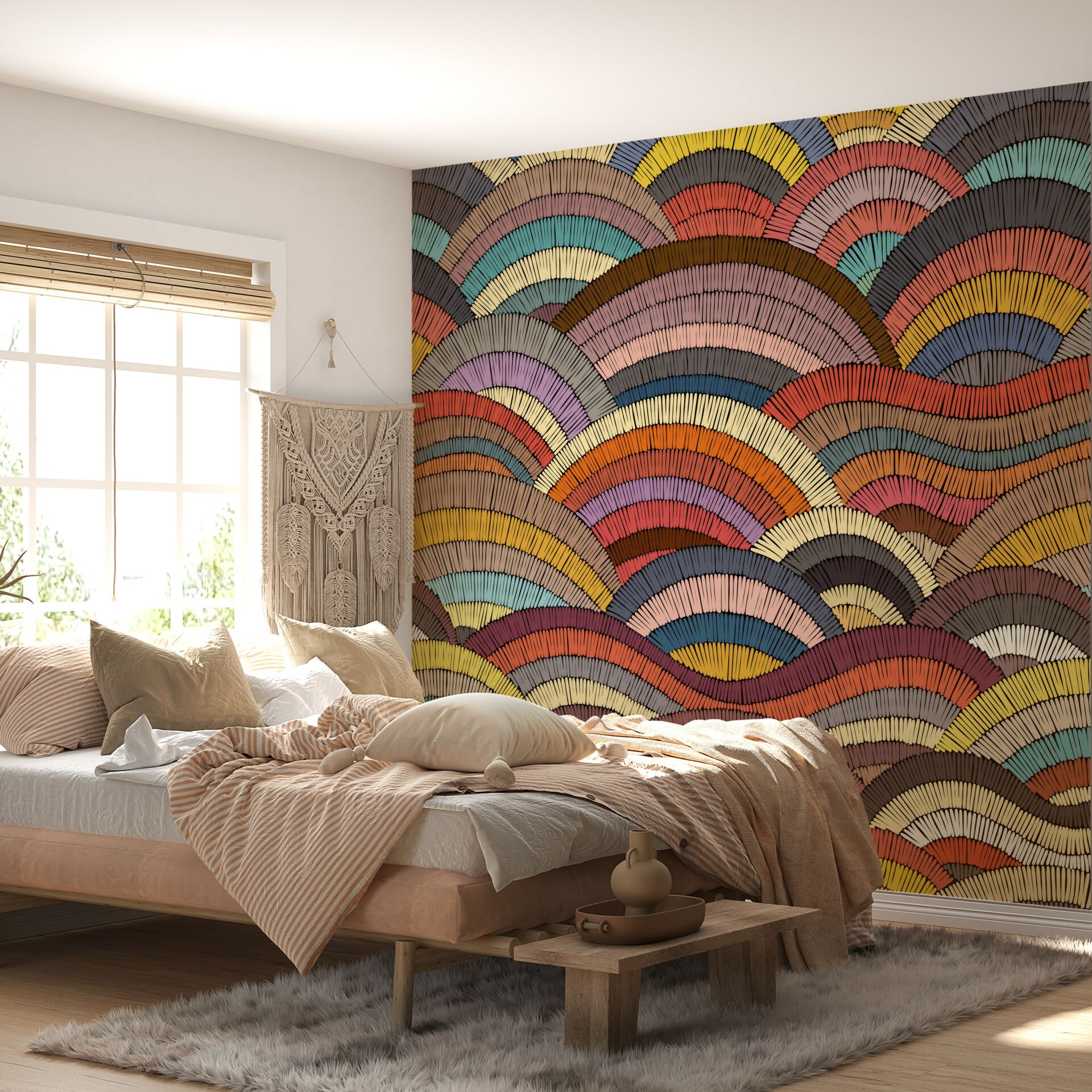Dalga Dalga Gökkuşağı Renkler Tasarım Duvar Kağıdı