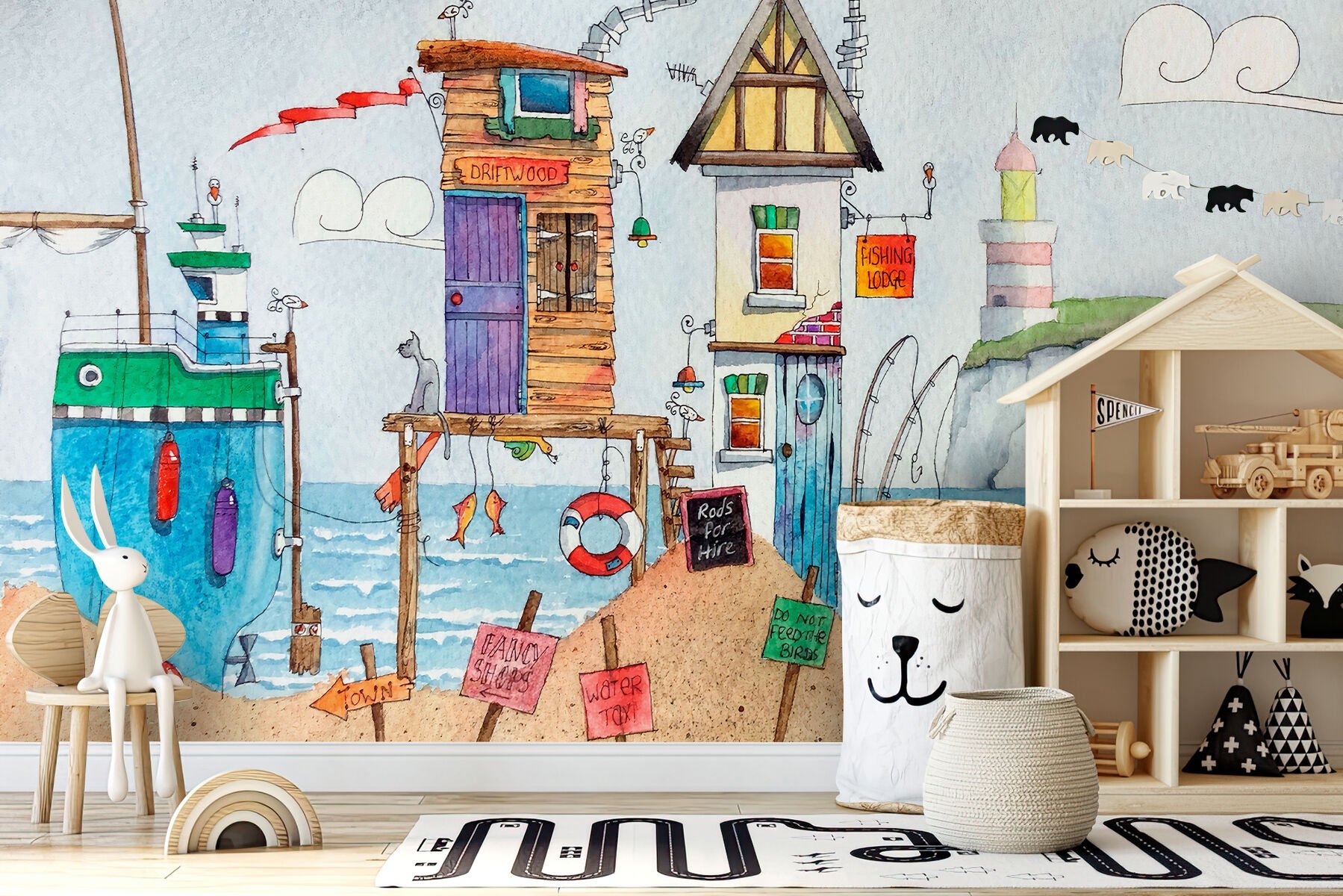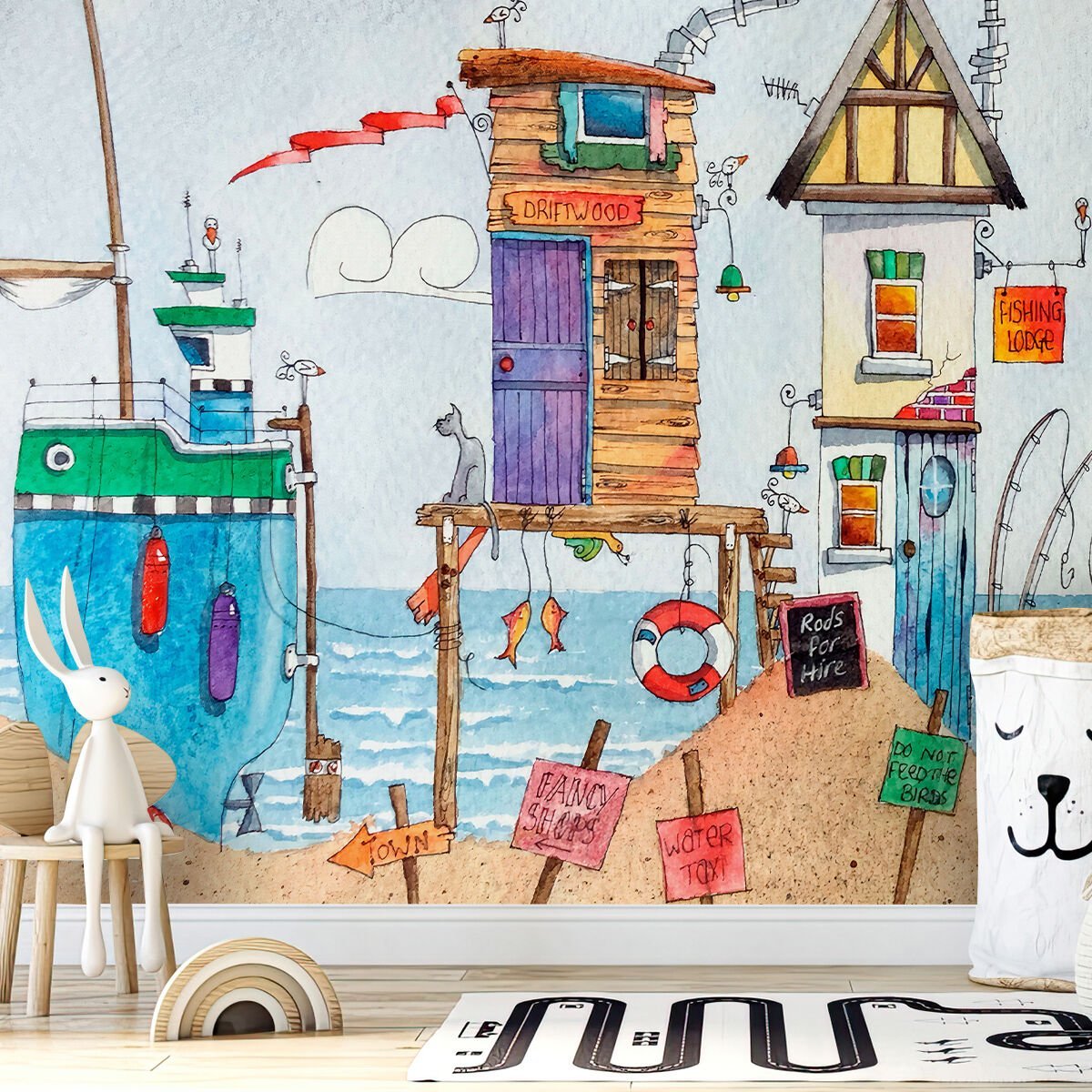 Deniz Kenarında Küçük Kulübeler Duvar Kağıdı
