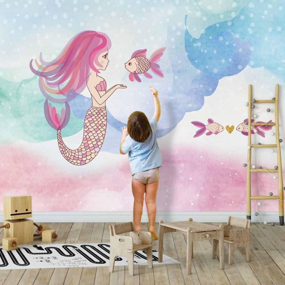 Deniz Kızı ve Japon Balığı Yumuşak Renkli Arka Plan Duvar Kağıdı