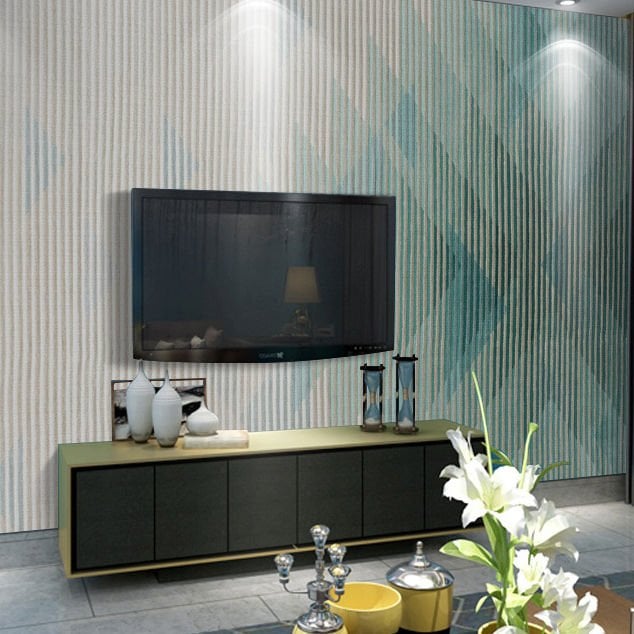 Dikey Çizgili Turkuaz Üçgen Detaylı Duvar Kağıdı