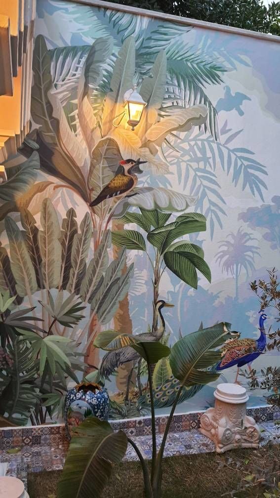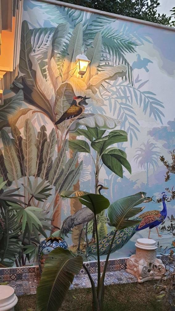 Dış Mekan Özel Tasarım Kuşlar Ağaçlar Duvar Kağıdı