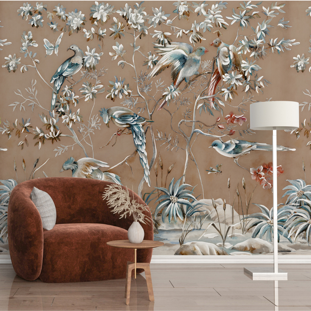 Kuş ve Çiçek Desenli Duvar Kağıdı