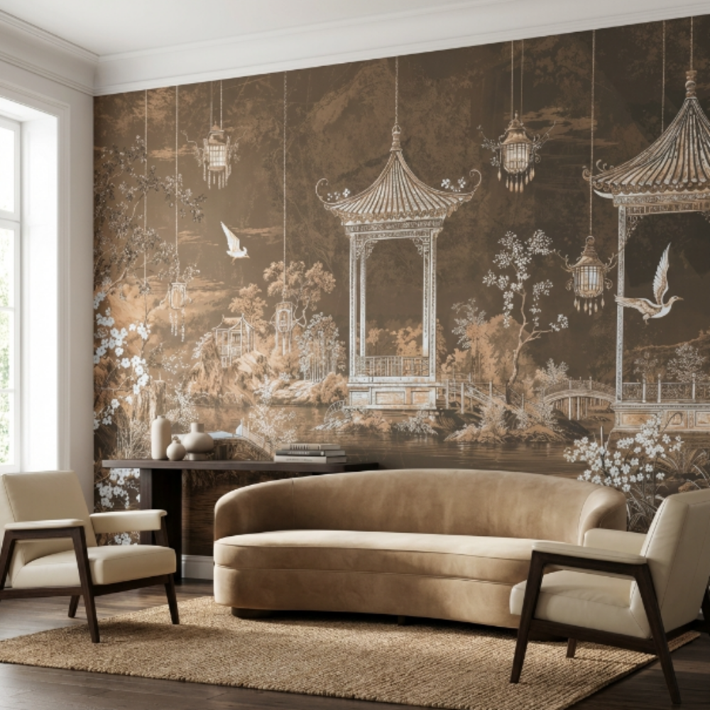 Doğu Bahçesi Pavilion Manzara Duvar Kağıdı – Serenity Beige